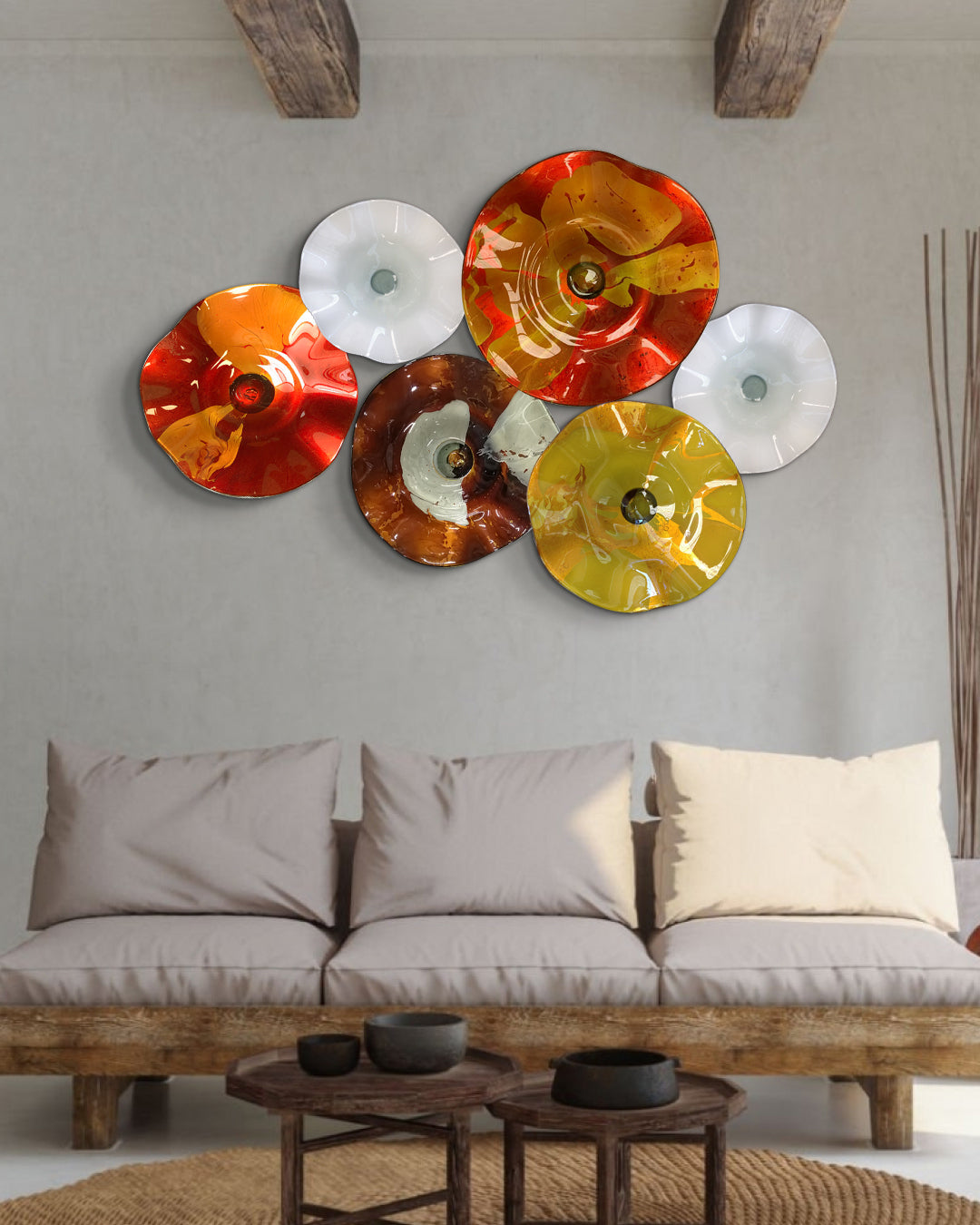 Con nuestro set de 6 platones de vidrio soplado podrás darle personalidad a tus espacios interiores gracias a sus distintas texturas y acabados originales, con sus diferentes combinaciones de color será posible crear ambientes especiales y visualmente atractivos que destacarán la belleza de su entorno en cualquier habitación, con la variación correcta destacarán la identidad de tu hogar.