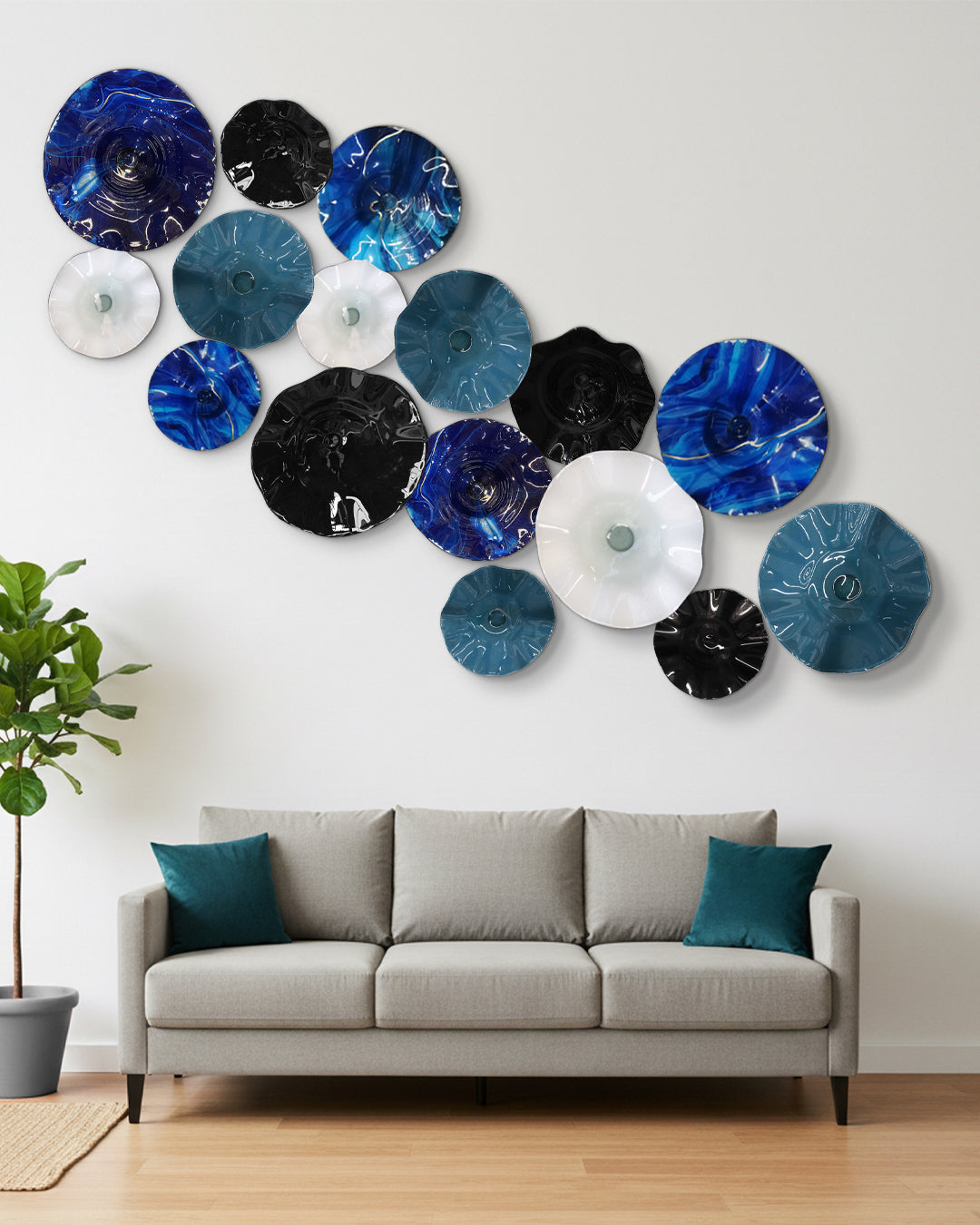 Con nuestro set de 16 platones de vidrio soplado podrás darle personalidad a tus espacios interiores gracias a sus distintas texturas y acabados originales, con sus diferentes combinaciones de color será posible crear ambientes especiales y visualmente atractivos que destacarán la belleza de su entorno en cualquier habitación, con la variación correcta destacarán la identidad de tu hogar.