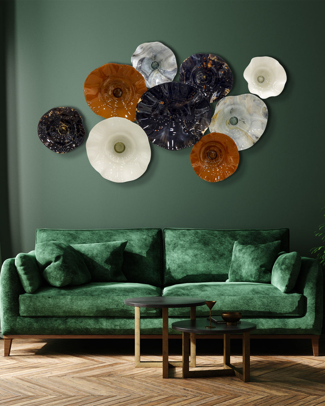 Con nuestro set de 9 platones de vidrio soplado podrás darle personalidad a tus espacios interiores gracias a sus distintas texturas y acabados originales, con sus diferentes combinaciones de color será posible crear ambientes especiales y visualmente atractivos que destacarán la belleza de su entorno en cualquier habitación, con la variación correcta destacarán la identidad de tu hogar.