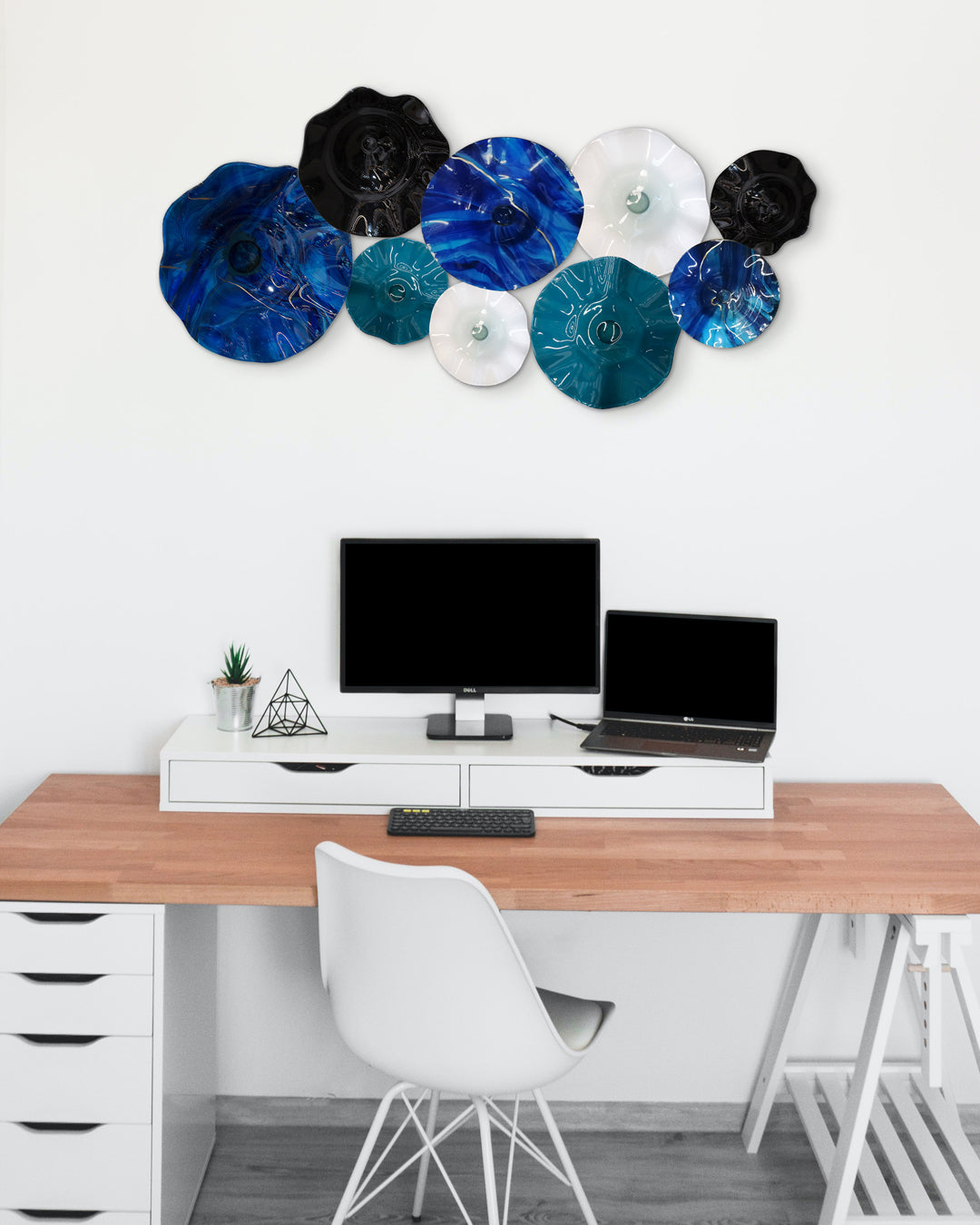 Con nuestro set de 9 platones de vidrio soplado podrás darle personalidad a tus espacios interiores gracias a sus distintas texturas y acabados originales, con sus diferentes combinaciones de color será posible crear ambientes especiales y visualmente atractivos que destacarán la belleza de su entorno en cualquier habitación, con la variación correcta destacarán la identidad de tu hogar.
