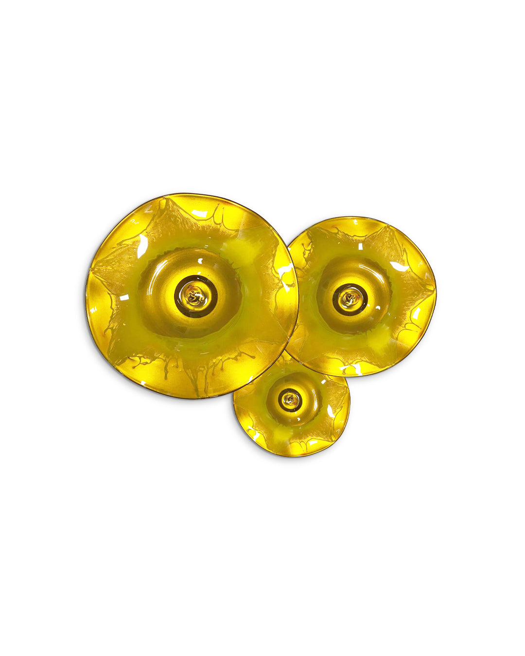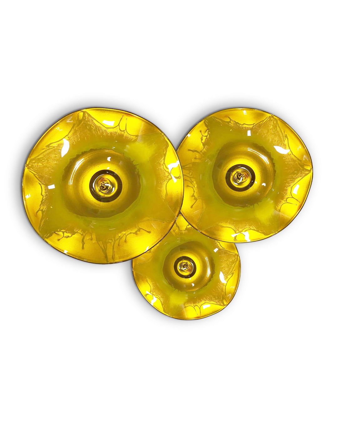 Con nuestro juego de platones de vidrio soplado conseguirás darle el toque justo de color a tus espacios, con sus diferentes texturas y acabados originales podrás crear ambientes especiales y visualmente atractivos que destacarán la belleza de su entorno en cualquier habitación.