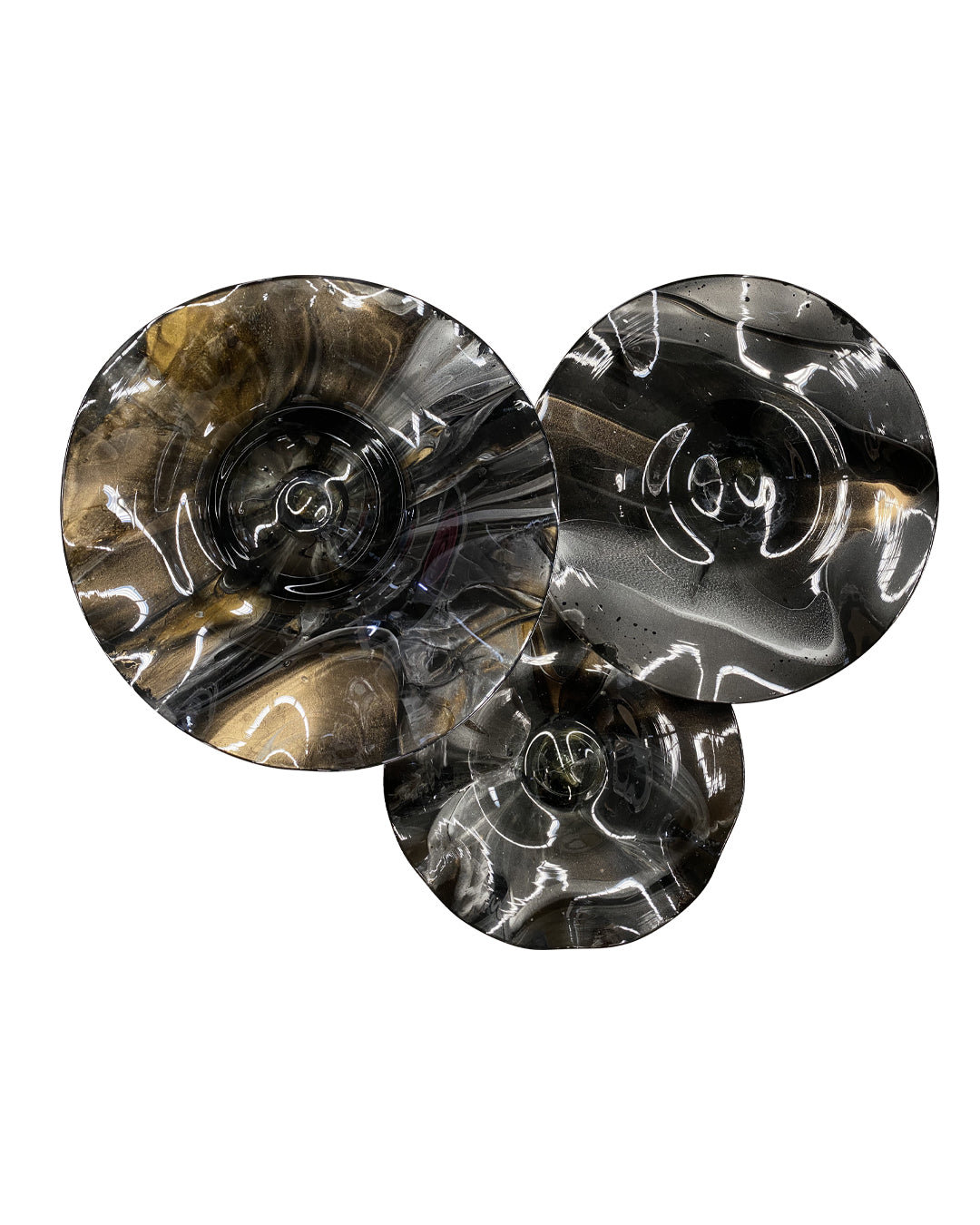 Con nuestro juego de platones de vidrio soplado conseguirás darle el toque justo de color a tus espacios, con sus diferentes texturas y acabados originales podrás crear ambientes especiales y visualmente atractivos que destacarán la belleza de su entorno en cualquier habitación.