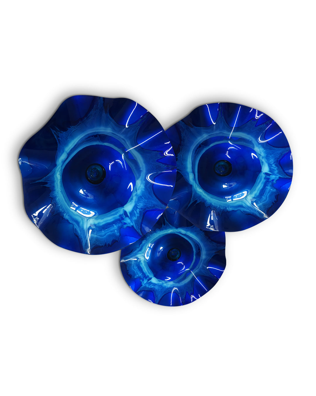 Con nuestro juego de platones de vidrio soplado conseguirás darle el toque justo de color a tus espacios, con sus diferentes texturas y acabados originales podrás crear ambientes especiales y visualmente atractivos que destacarán la belleza de su entorno en cualquier habitación.