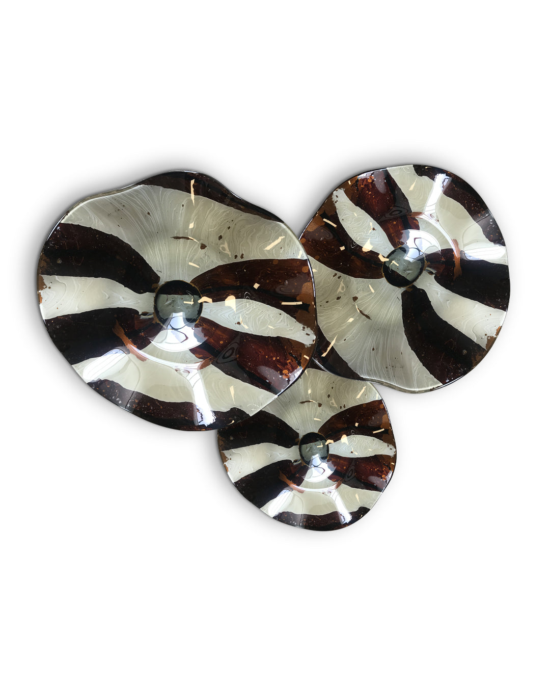 Con nuestro juego de platones de vidrio soplado conseguirás darle el toque justo de color a tus espacios, con sus diferentes texturas y acabados originales podrás crear ambientes especiales y visualmente atractivos que destacarán la belleza de su entorno en cualquier habitación.