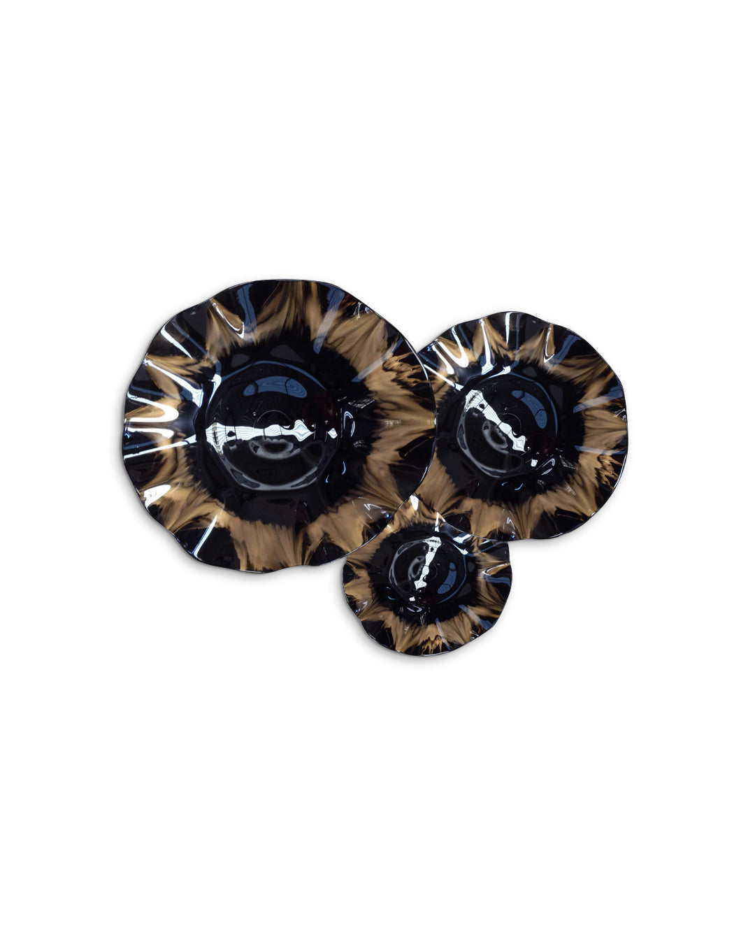 Con nuestro juego de platones de vidrio soplado conseguirás darle el toque justo de color a tus espacios, con sus diferentes texturas y acabados originales podrás crear ambientes especiales y visualmente atractivos que destacarán la belleza de su entorno en cualquier habitación.