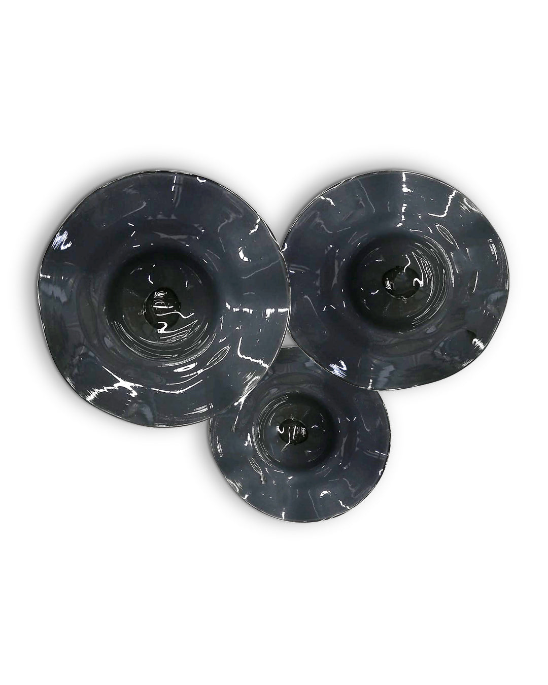 Con nuestro juego de platones de vidrio soplado conseguirás darle el toque justo de color a tus espacios, con sus diferentes texturas y acabados originales podrás crear ambientes especiales y visualmente atractivos que destacarán la belleza de su entorno en cualquier habitación.