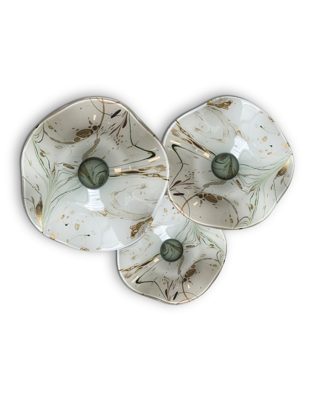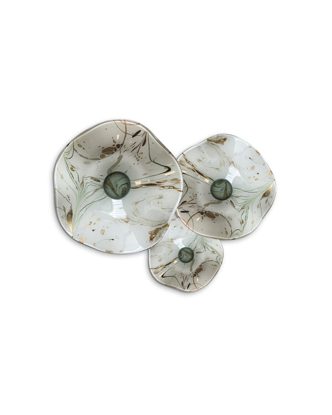 Con nuestro juego de platones de vidrio soplado conseguirás darle el toque justo de color a tus espacios, con sus diferentes texturas y acabados originales podrás crear ambientes especiales y visualmente atractivos que destacarán la belleza de su entorno en cualquier habitación.