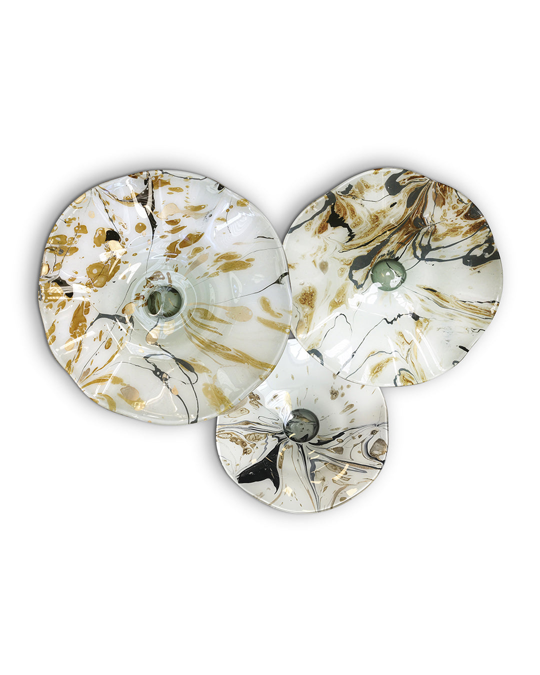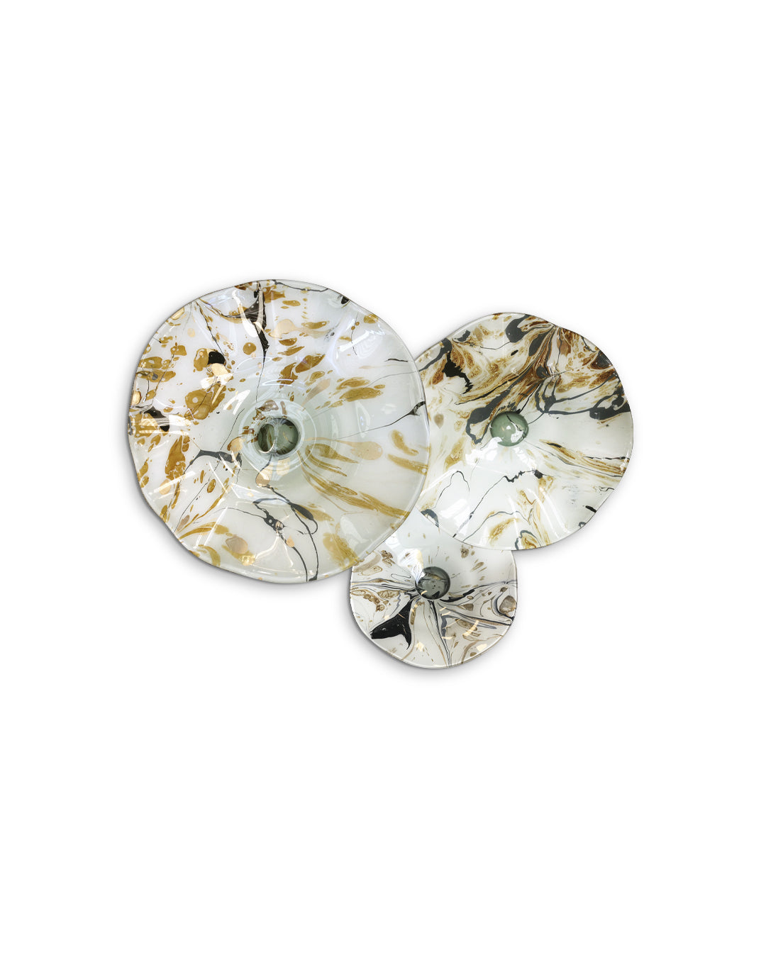 Con nuestro juego de platones de vidrio soplado conseguirás darle el toque justo de color a tus espacios, con sus diferentes texturas y acabados originales podrás crear ambientes especiales y visualmente atractivos que destacarán la belleza de su entorno en cualquier habitación.