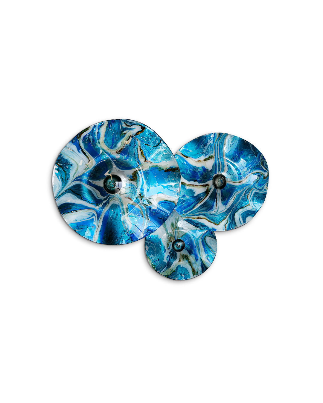 Con nuestro juego de platones de vidrio soplado conseguirás darle el toque justo de color a tus espacios, con sus diferentes texturas y acabados originales podrás crear ambientes especiales y visualmente atractivos que destacarán la belleza de su entorno en cualquier habitación.
