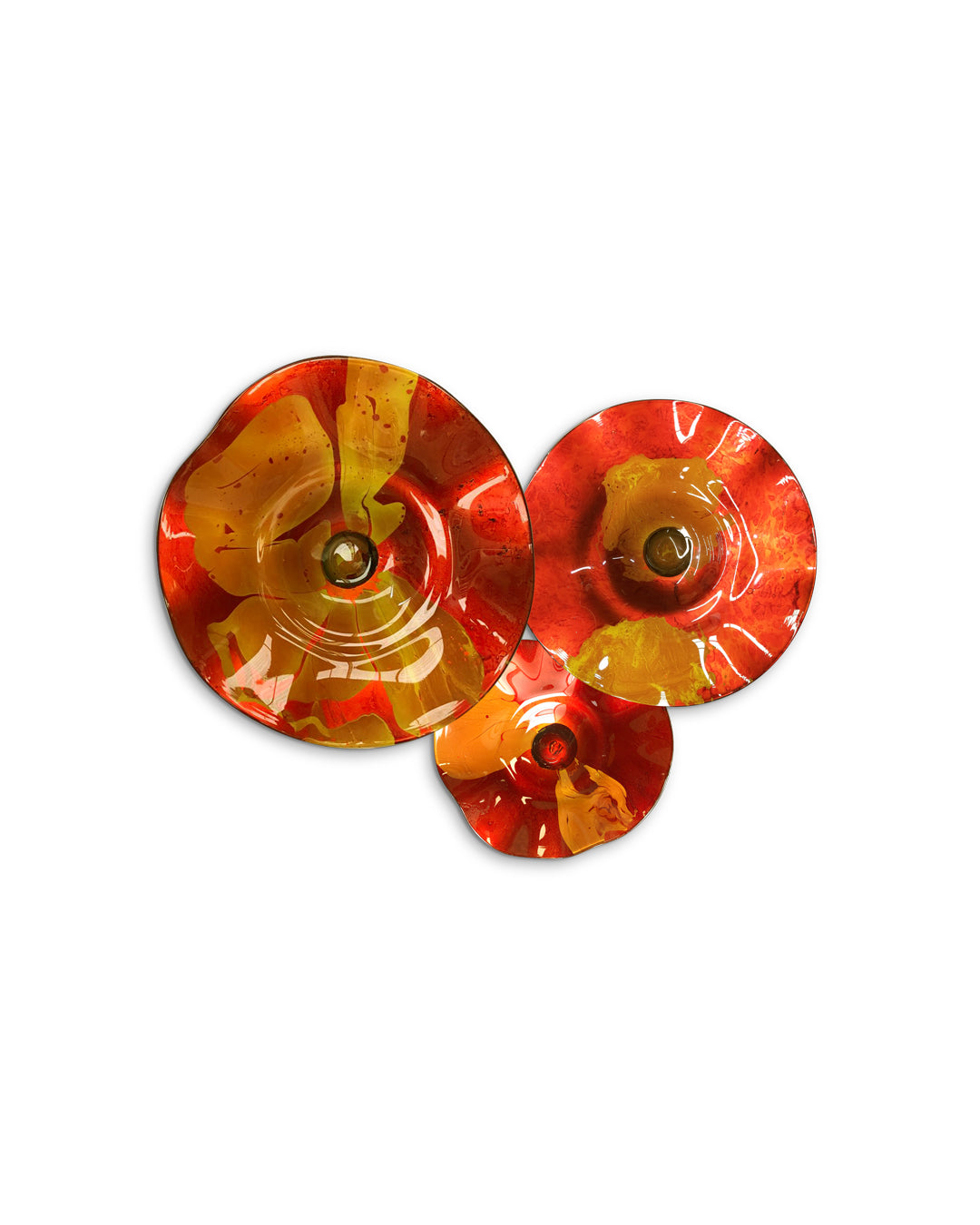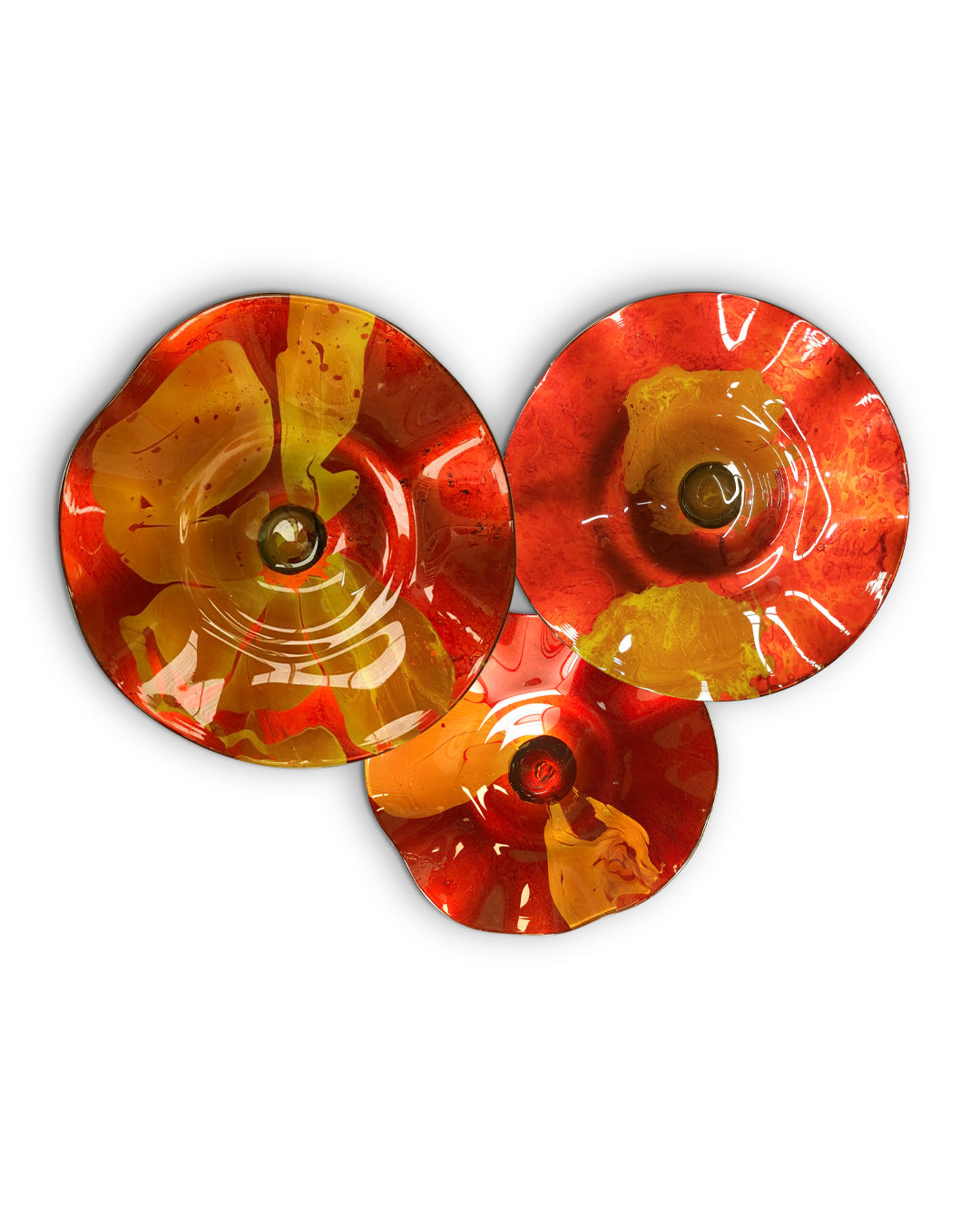 Con nuestro juego de platones de vidrio soplado conseguirás darle el toque justo de color a tus espacios, con sus diferentes texturas y acabados originales podrás crear ambientes especiales y visualmente atractivos que destacarán la belleza de su entorno en cualquier habitación.