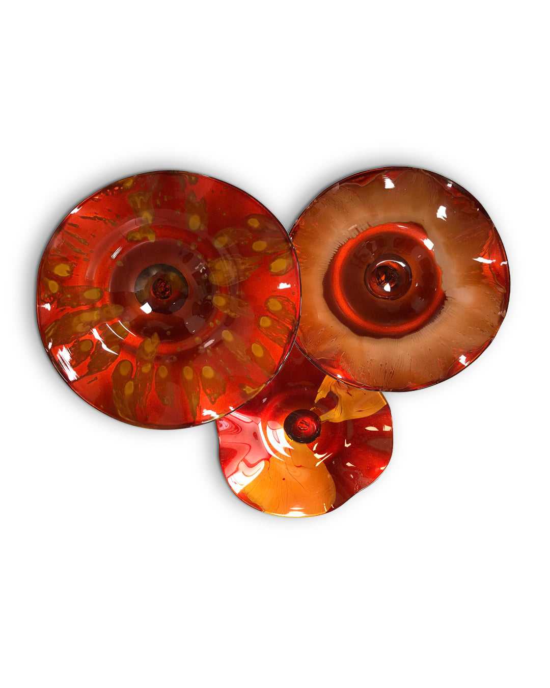 Con nuestro juego de platones de vidrio soplado conseguirás darle el toque justo de color a tus espacios, con sus diferentes texturas y acabados originales podrás crear ambientes especiales y visualmente atractivos que destacarán la belleza de su entorno en cualquier habitación.