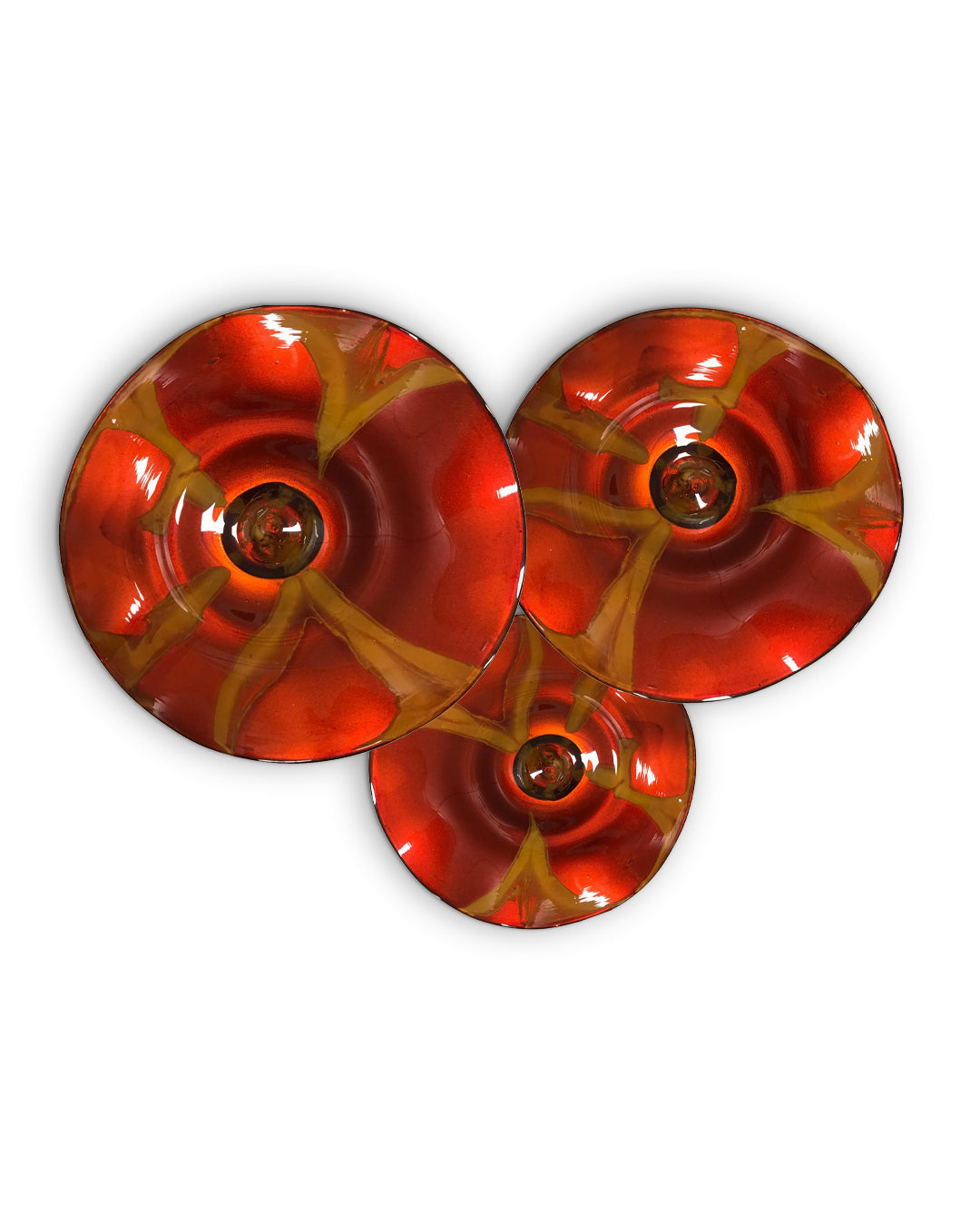 Con nuestro juego de platones de vidrio soplado conseguirás darle el toque justo de color a tus espacios, con sus diferentes texturas y acabados originales podrás crear ambientes especiales y visualmente atractivos que destacarán la belleza de su entorno en cualquier habitación.