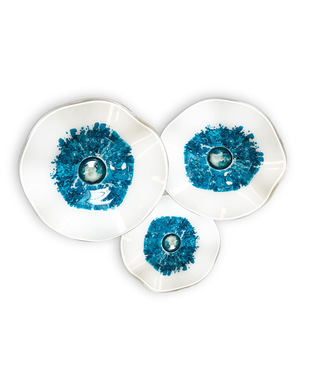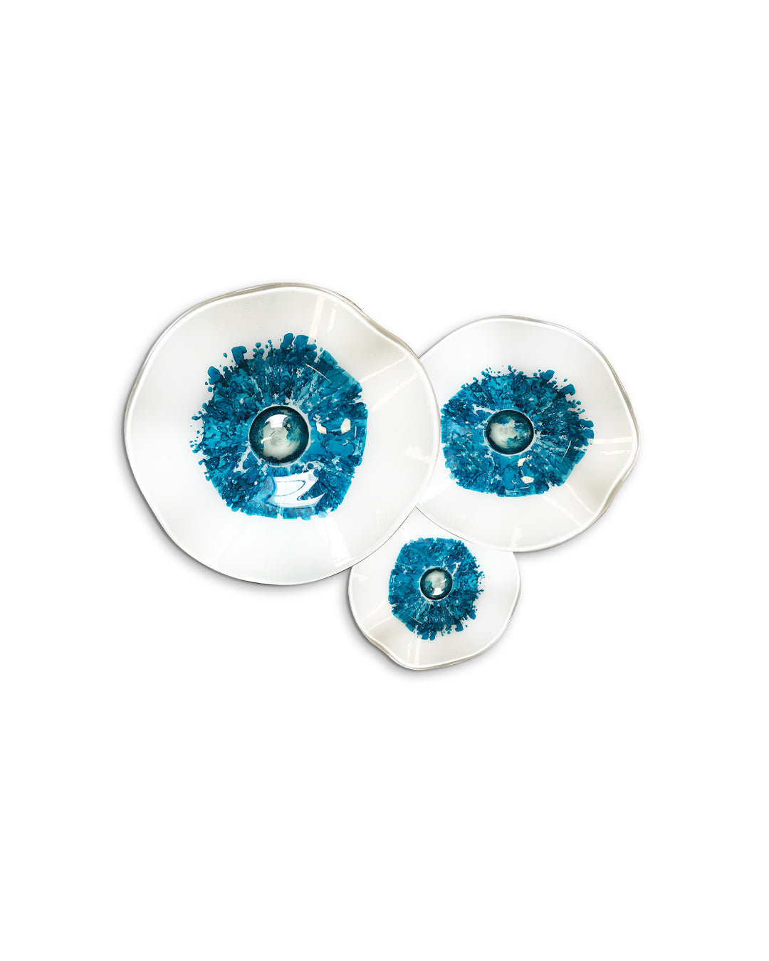 Con nuestro juego de platones de vidrio soplado conseguirás darle el toque justo de color a tus espacios, con sus diferentes texturas y acabados originales podrás crear ambientes especiales y visualmente atractivos que destacarán la belleza de su entorno en cualquier habitación.