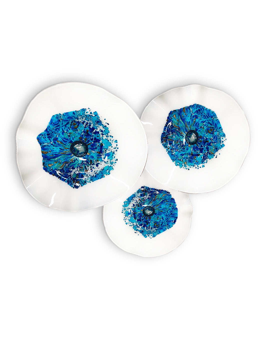 Con nuestro juego de platones de vidrio soplado conseguirás darle el toque justo de color a tus espacios, con sus diferentes texturas y acabados originales podrás crear ambientes especiales y visualmente atractivos que destacarán la belleza de su entorno en cualquier habitación.