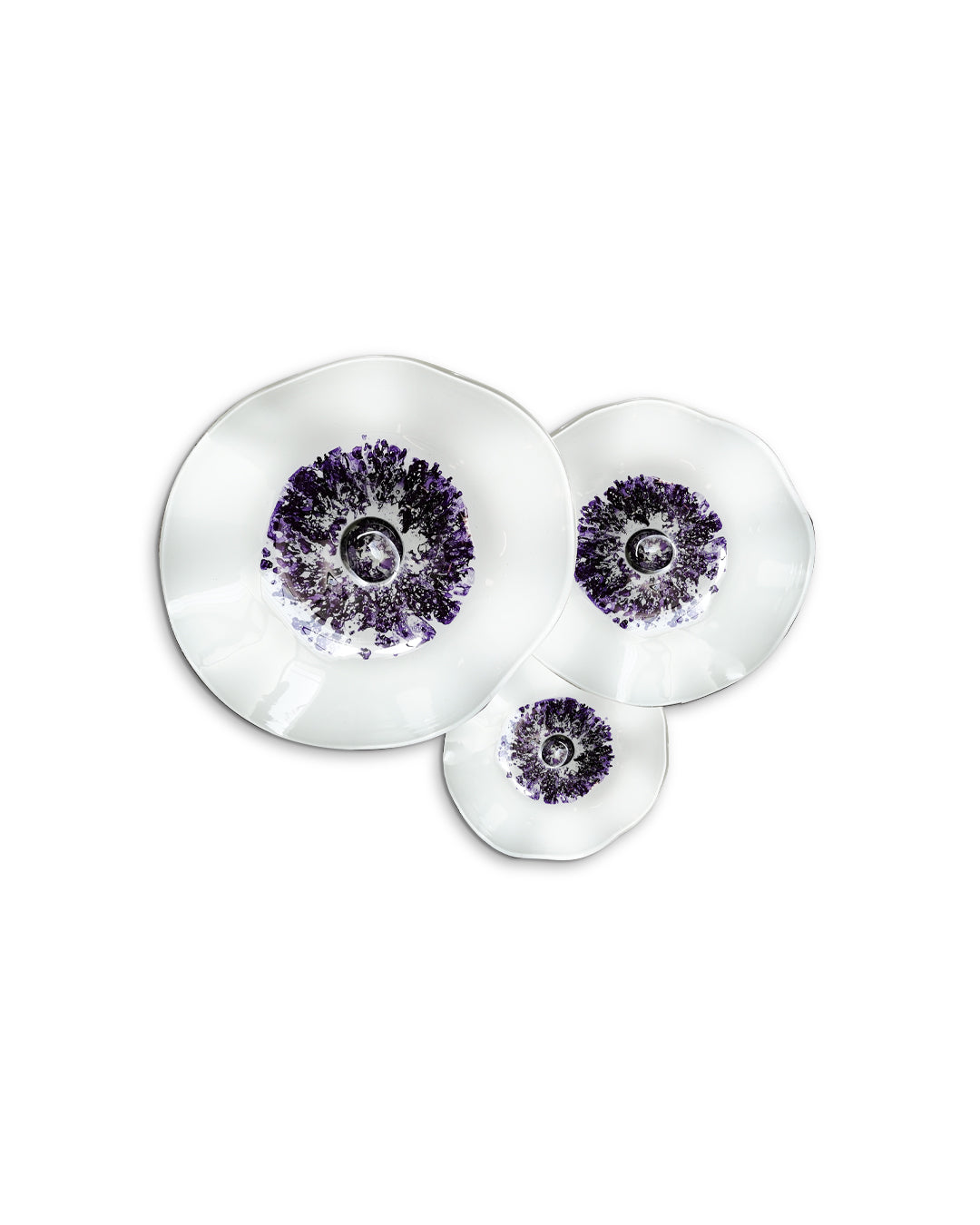 Con nuestro juego de platones de vidrio soplado conseguirás darle el toque justo de color a tus espacios, con sus diferentes texturas y acabados originales podrás crear ambientes especiales y visualmente atractivos que destacarán la belleza de su entorno en cualquier habitación.