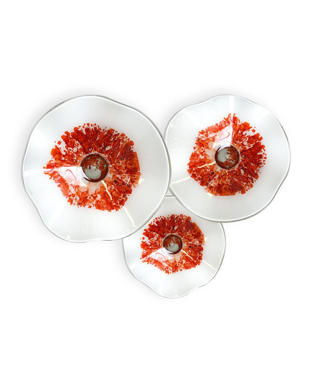 Con nuestro juego de platones de vidrio soplado conseguirás darle el toque justo de color a tus espacios, con sus diferentes texturas y acabados originales podrás crear ambientes especiales y visualmente atractivos que destacarán la belleza de su entorno en cualquier habitación.