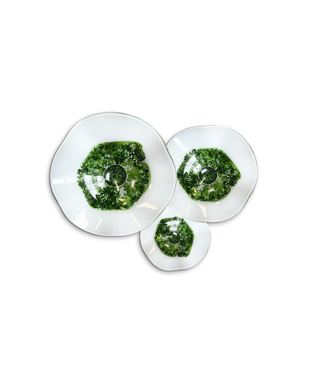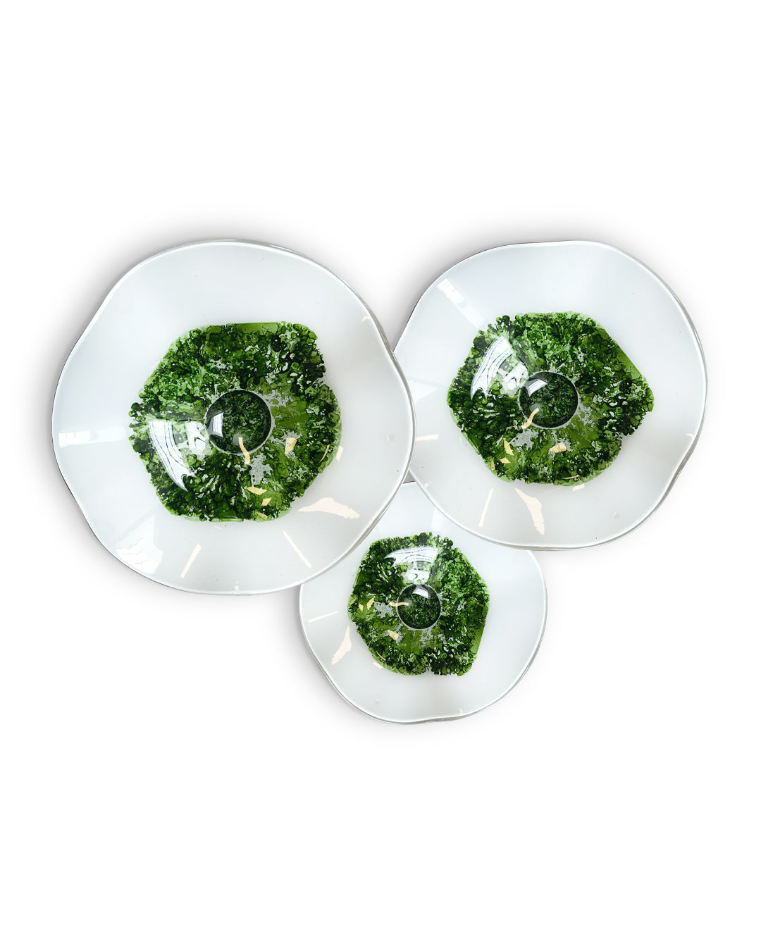 Con nuestro juego de platones de vidrio soplado conseguirás darle el toque justo de color a tus espacios, con sus diferentes texturas y acabados originales podrás crear ambientes especiales y visualmente atractivos que destacarán la belleza de su entorno en cualquier habitación.