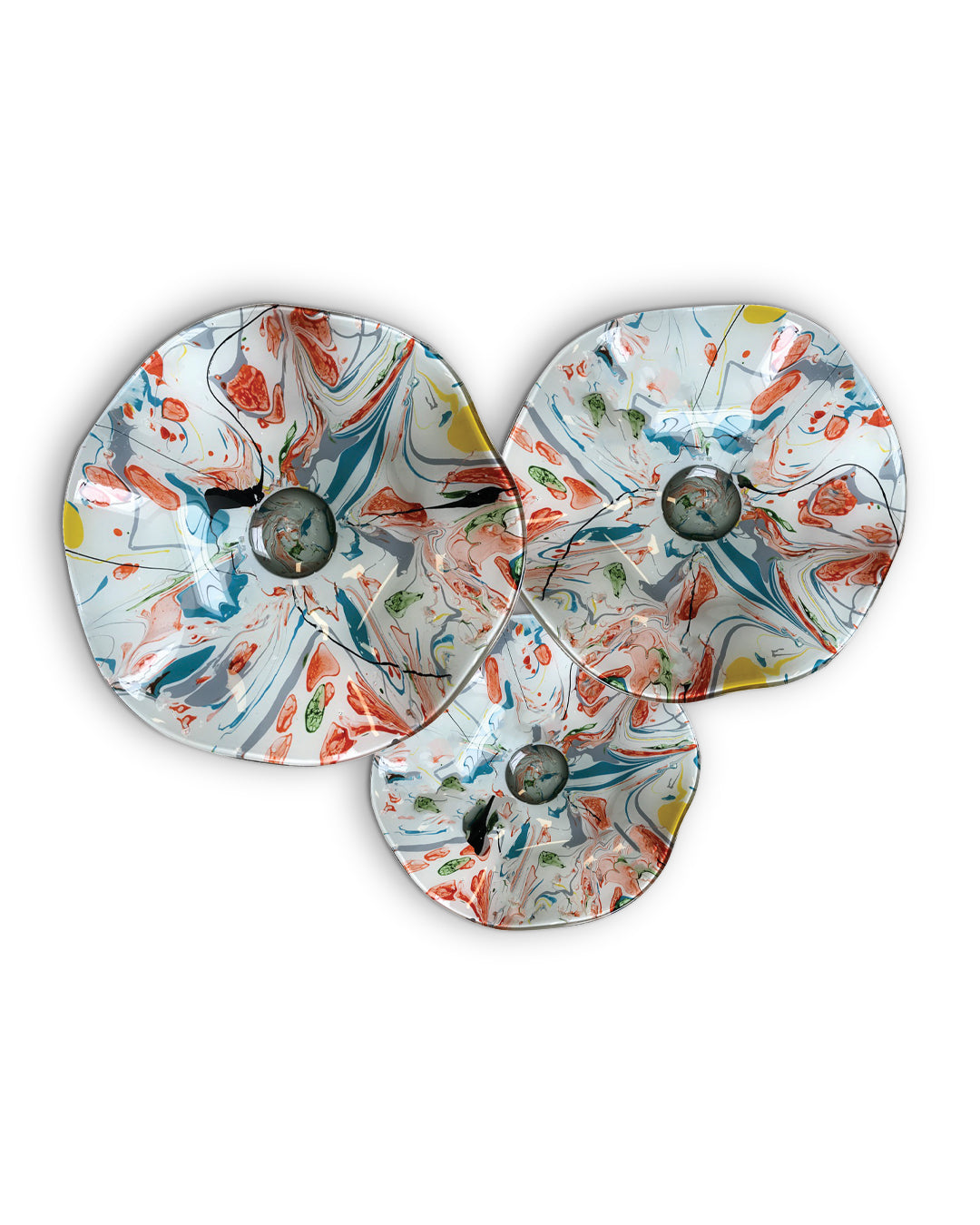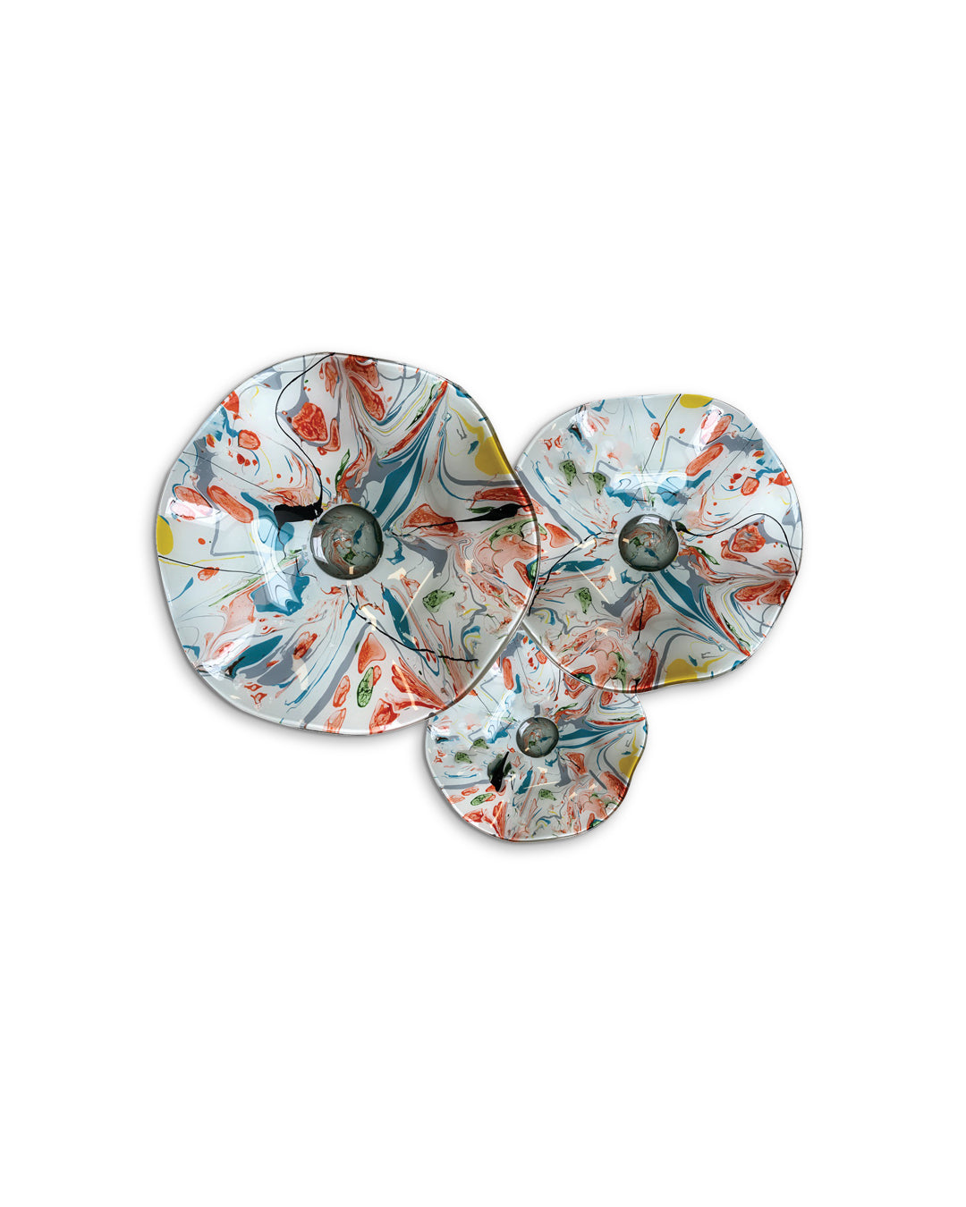 Con nuestro juego de platones de vidrio soplado conseguirás darle el toque justo de color a tus espacios, con sus diferentes texturas y acabados originales podrás crear ambientes especiales y visualmente atractivos que destacarán la belleza de su entorno en cualquier habitación.