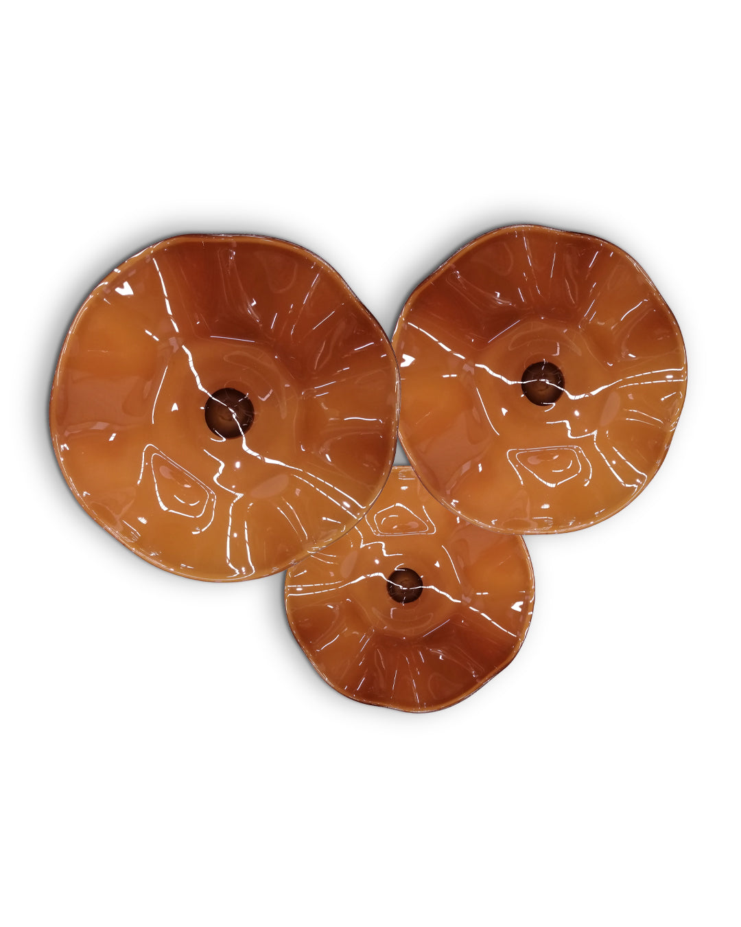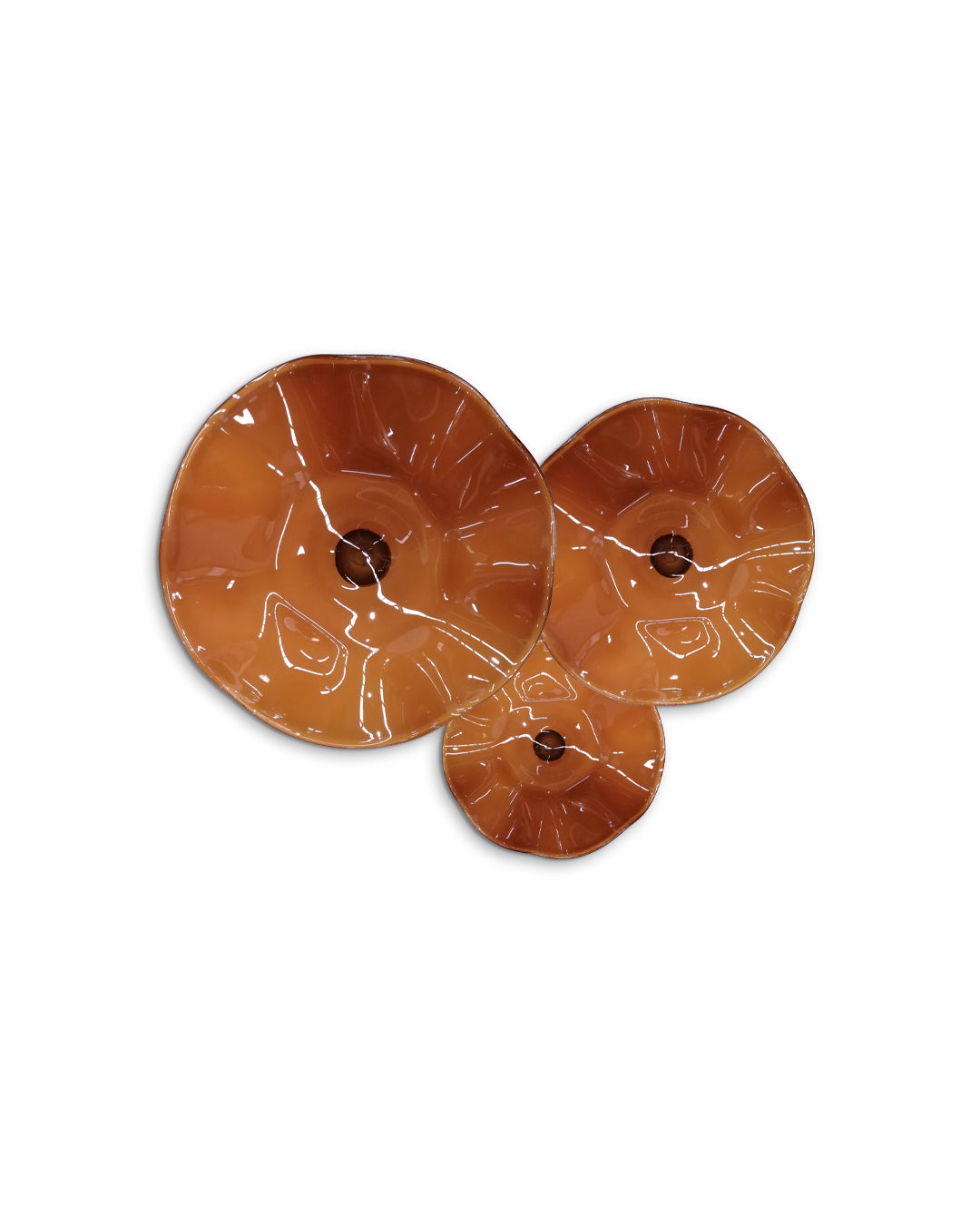 Con nuestro juego de platones de vidrio soplado conseguirás darle el toque justo de color a tus espacios, con sus diferentes texturas y acabados originales podrás crear ambientes especiales y visualmente atractivos que destacarán la belleza de su entorno en cualquier habitación.