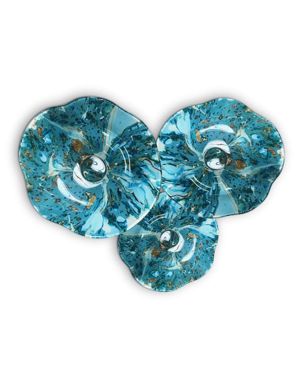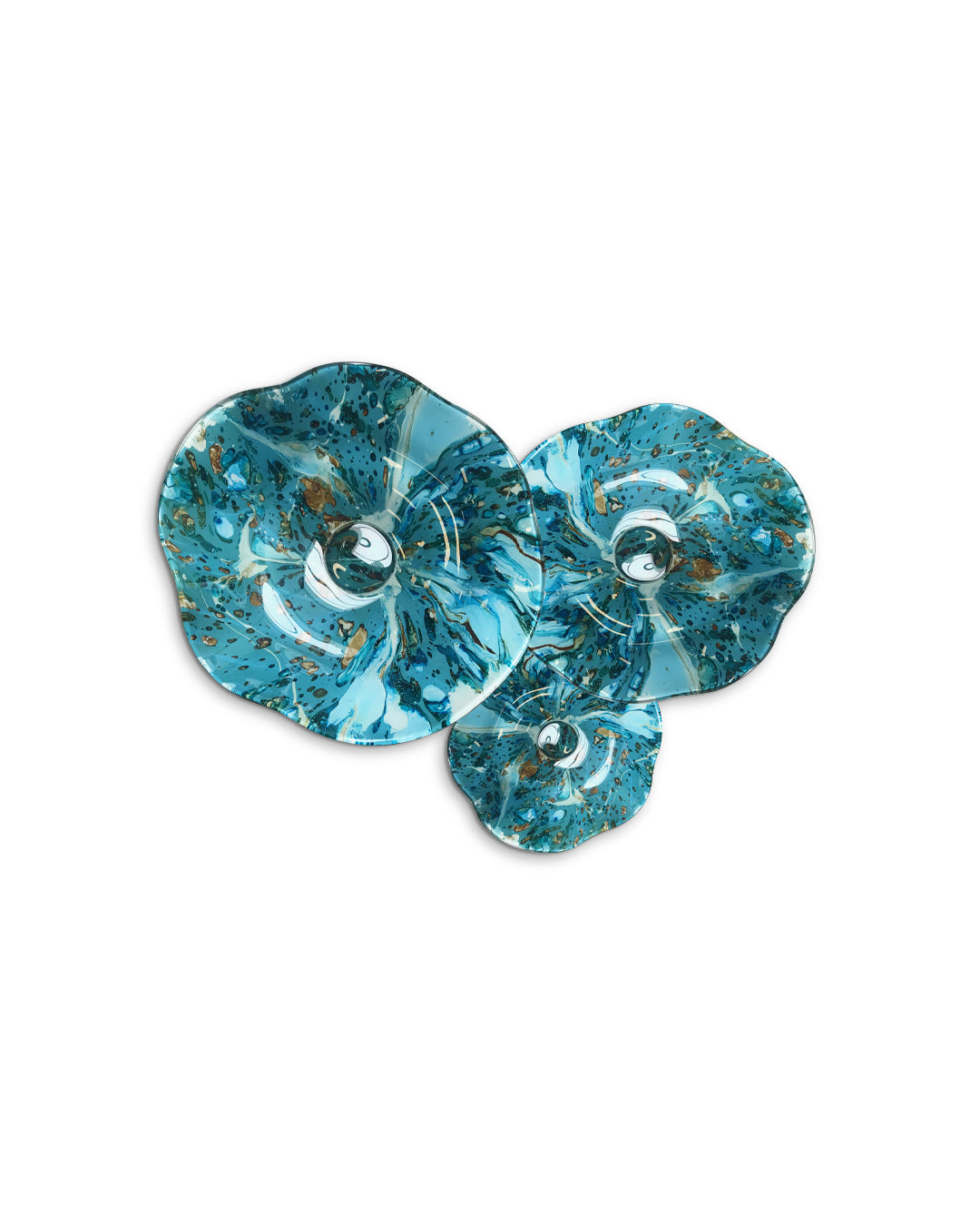 Con nuestro juego de platones de vidrio soplado conseguirás darle el toque justo de color a tus espacios, con sus diferentes texturas y acabados originales podrás crear ambientes especiales y visualmente atractivos que destacarán la belleza de su entorno en cualquier habitación.