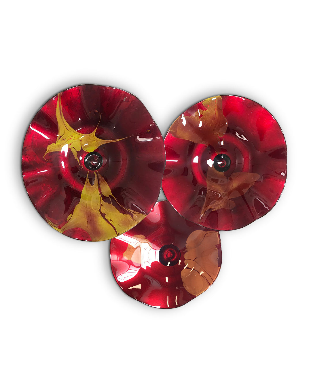 Con nuestro juego de platones de vidrio soplado conseguirás darle el toque justo de color a tus espacios, con sus diferentes texturas y acabados originales podrás crear ambientes especiales y visualmente atractivos que destacarán la belleza de su entorno en cualquier habitación.