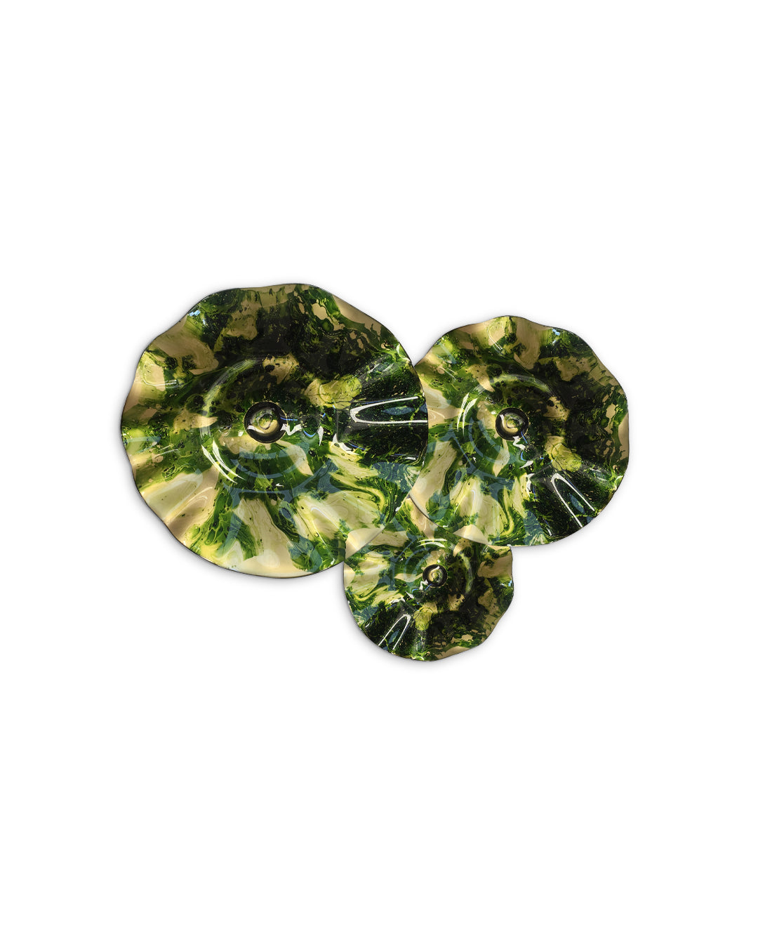 Con nuestro juego de platones de vidrio soplado conseguirás darle el toque justo de color a tus espacios, con sus diferentes texturas y acabados originales podrás crear ambientes especiales y visualmente atractivos que destacarán la belleza de su entorno en cualquier habitación.