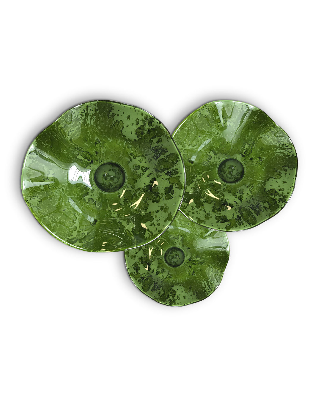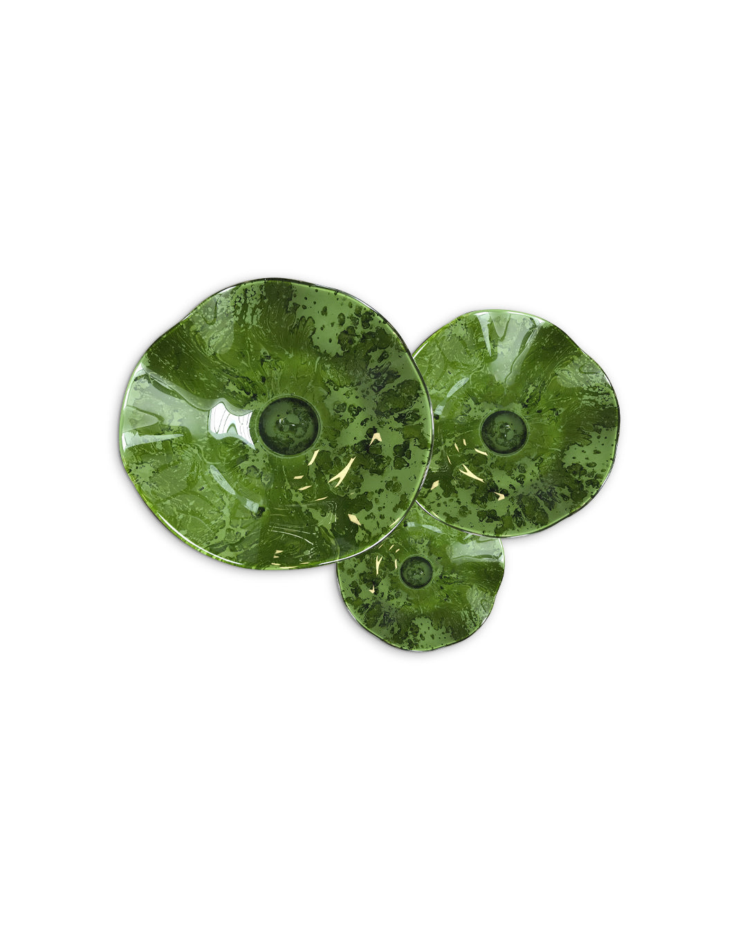 Con nuestro juego de platones de vidrio soplado conseguirás darle el toque justo de color a tus espacios, con sus diferentes texturas y acabados originales podrás crear ambientes especiales y visualmente atractivos que destacarán la belleza de su entorno en cualquier habitación.