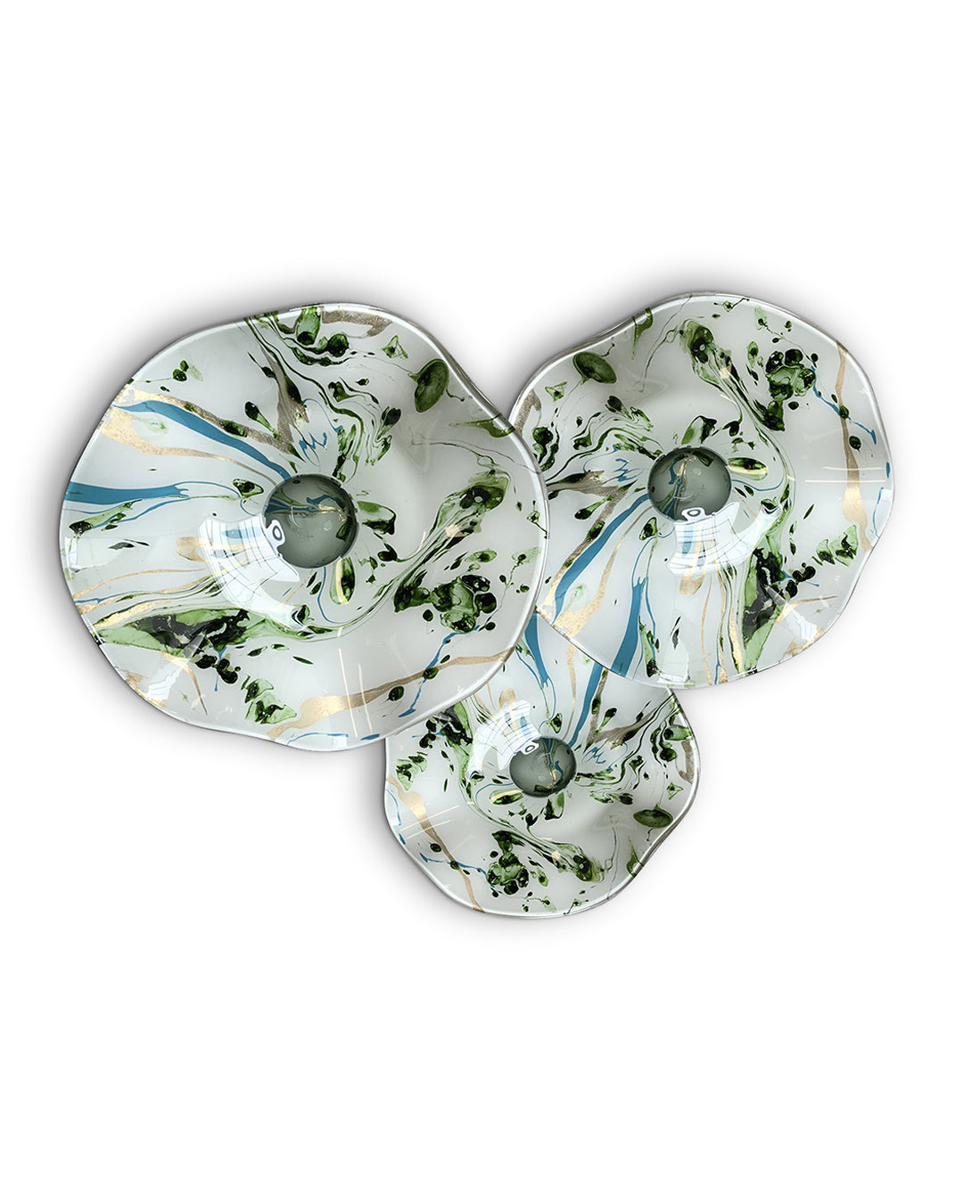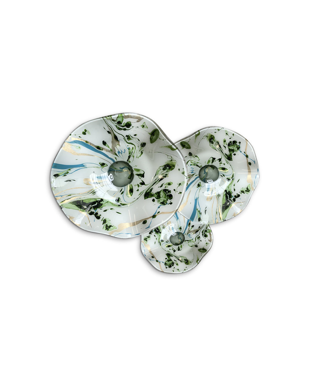 Con nuestro juego de platones de vidrio soplado conseguirás darle el toque justo de color a tus espacios, con sus diferentes texturas y acabados originales podrás crear ambientes especiales y visualmente atractivos que destacarán la belleza de su entorno en cualquier habitación.