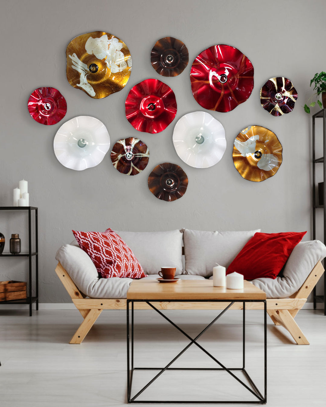 Con nuestro set de 11 platones de vidrio soplado podrás darle personalidad a tus espacios interiores gracias a sus distintas texturas y acabados originales, con sus diferentes combinaciones de color será posible crear ambientes especiales y visualmente atractivos que destacarán la belleza de su entorno en cualquier habitación, con la variación correcta destacarán la identidad de tu hogar.