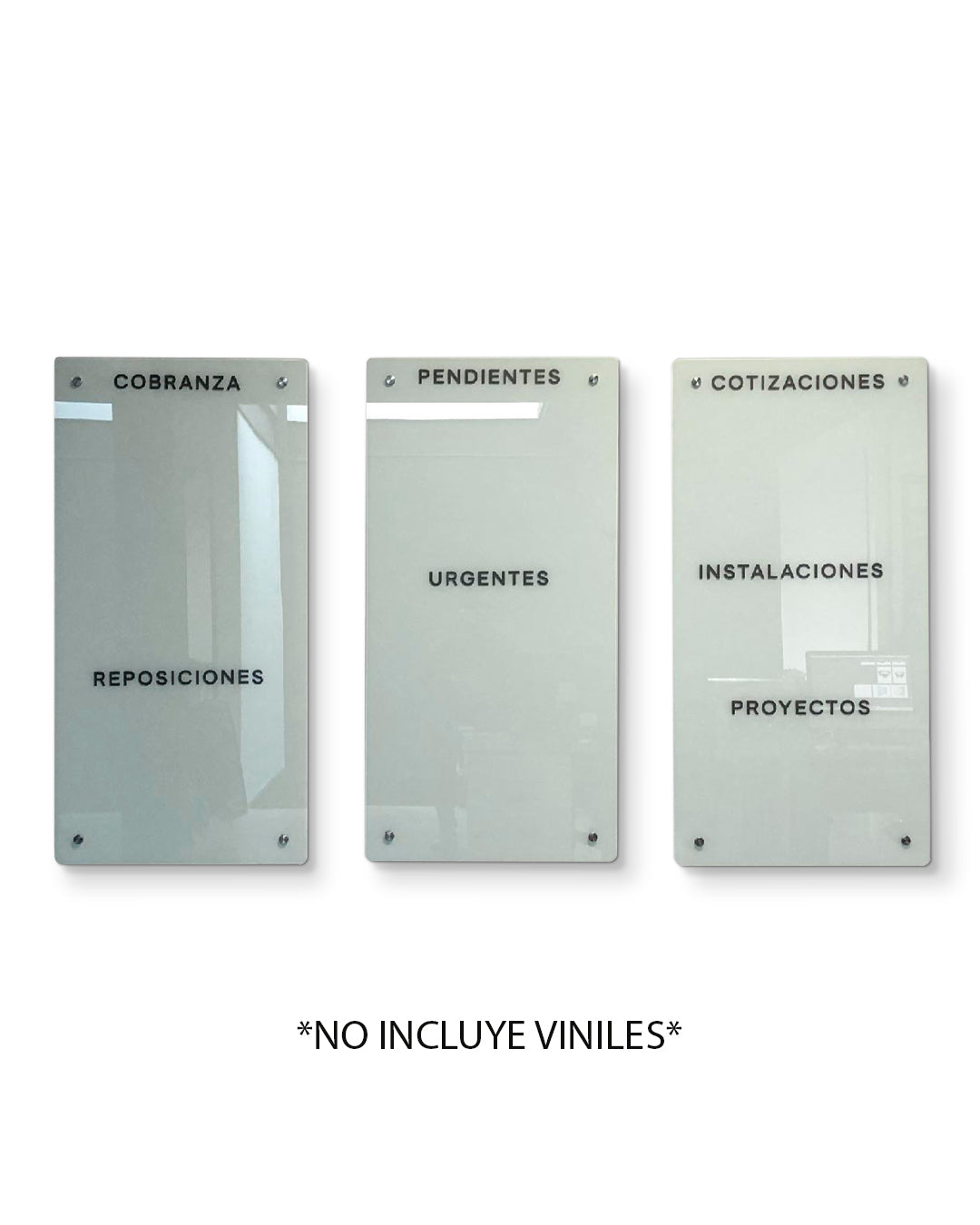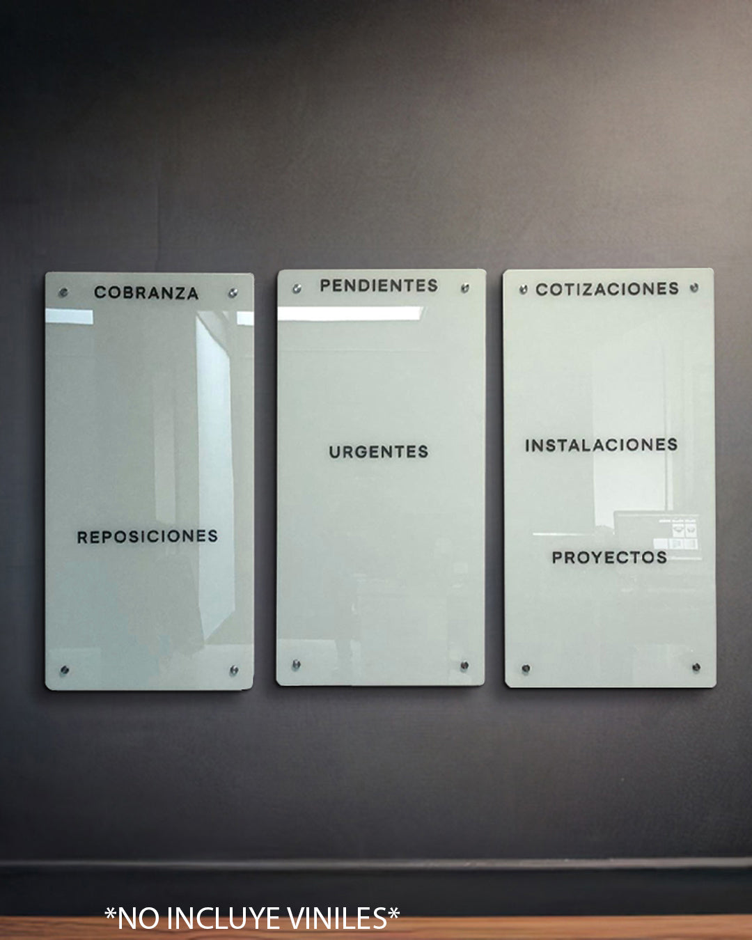 SET 3 PIZARRAS DE CRISTAL TEMPLADO 70 X 140 CM HUESO SÓLIDO