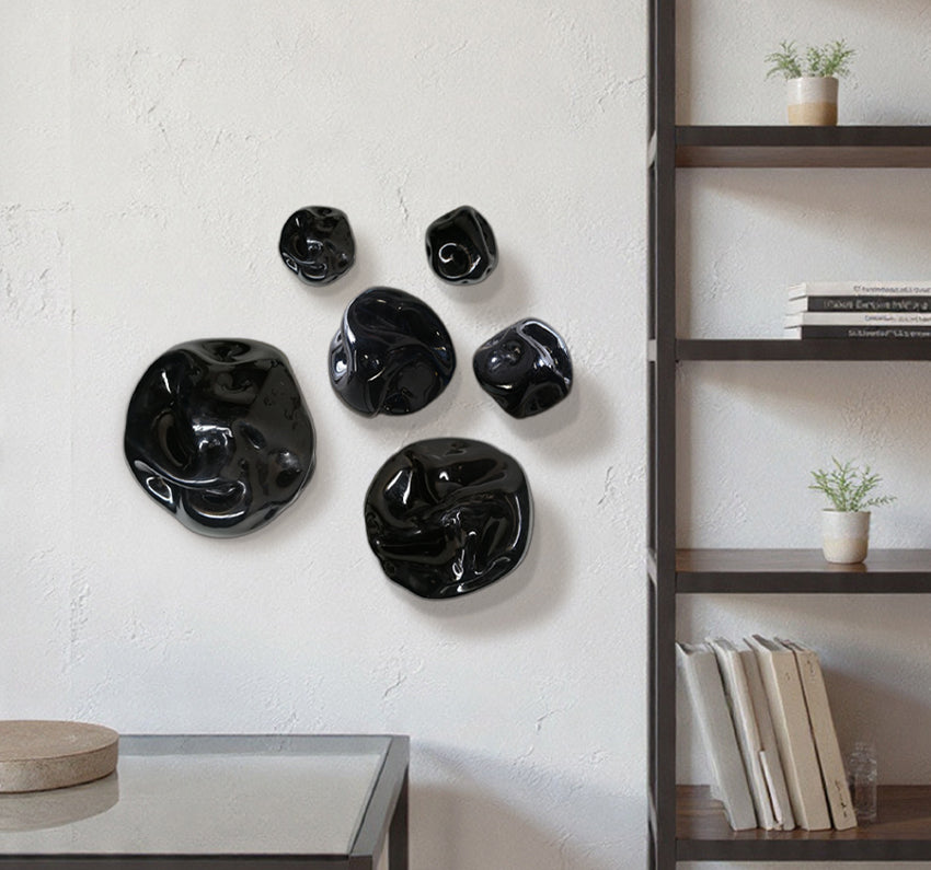 Esferas deformes de vidrio soplado pintado a mano con bases individuales de metal.