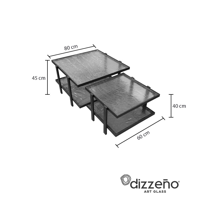 SET MESAS DE CENTRO DE METAL "CUADRANTE" 2 PZAS TERMOFORMADAS TRASLÚCIDAS