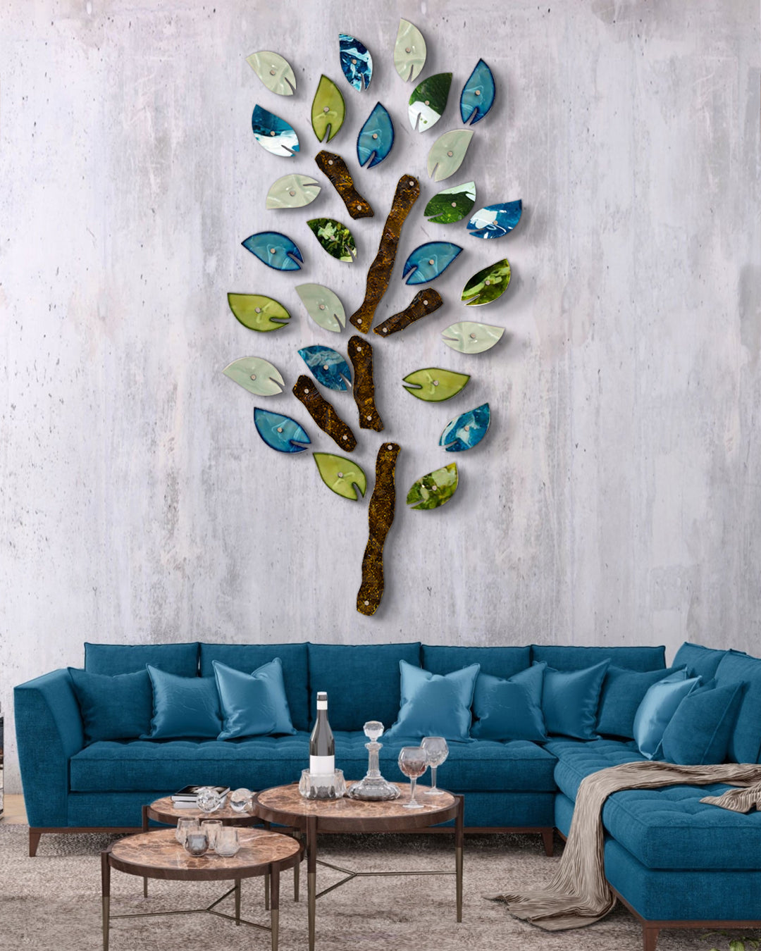 32 Piezas de vidrio termoformado de 6 mm pintado a mano a base de una técnica de resinas, con bases individuales de metal.