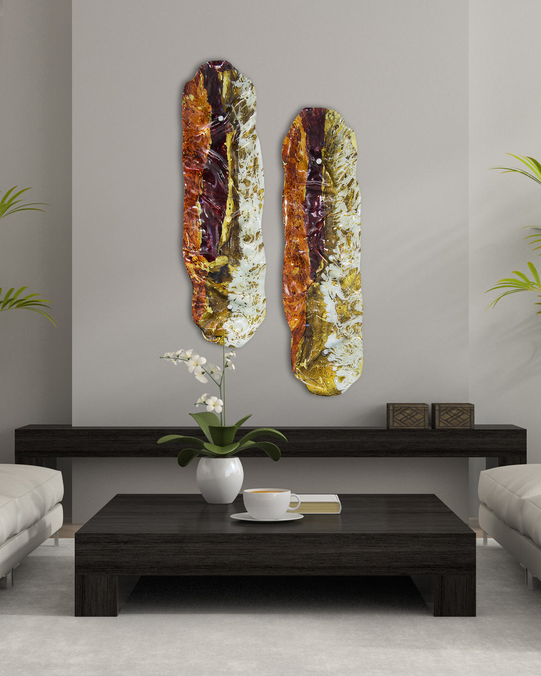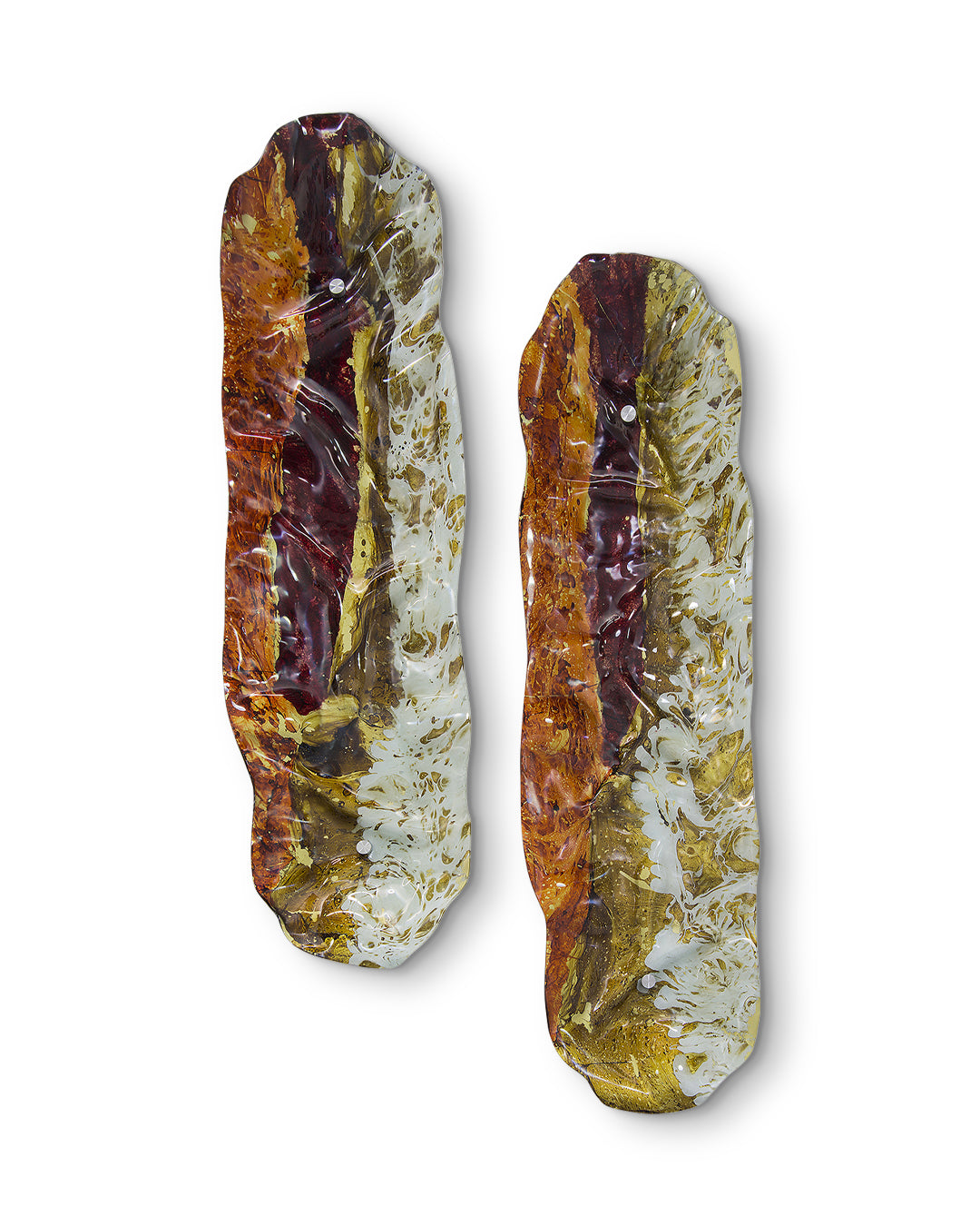 2 Piezas de vidrio termoformado de 6 mm pintado a mano a base de una técnica de resinas.