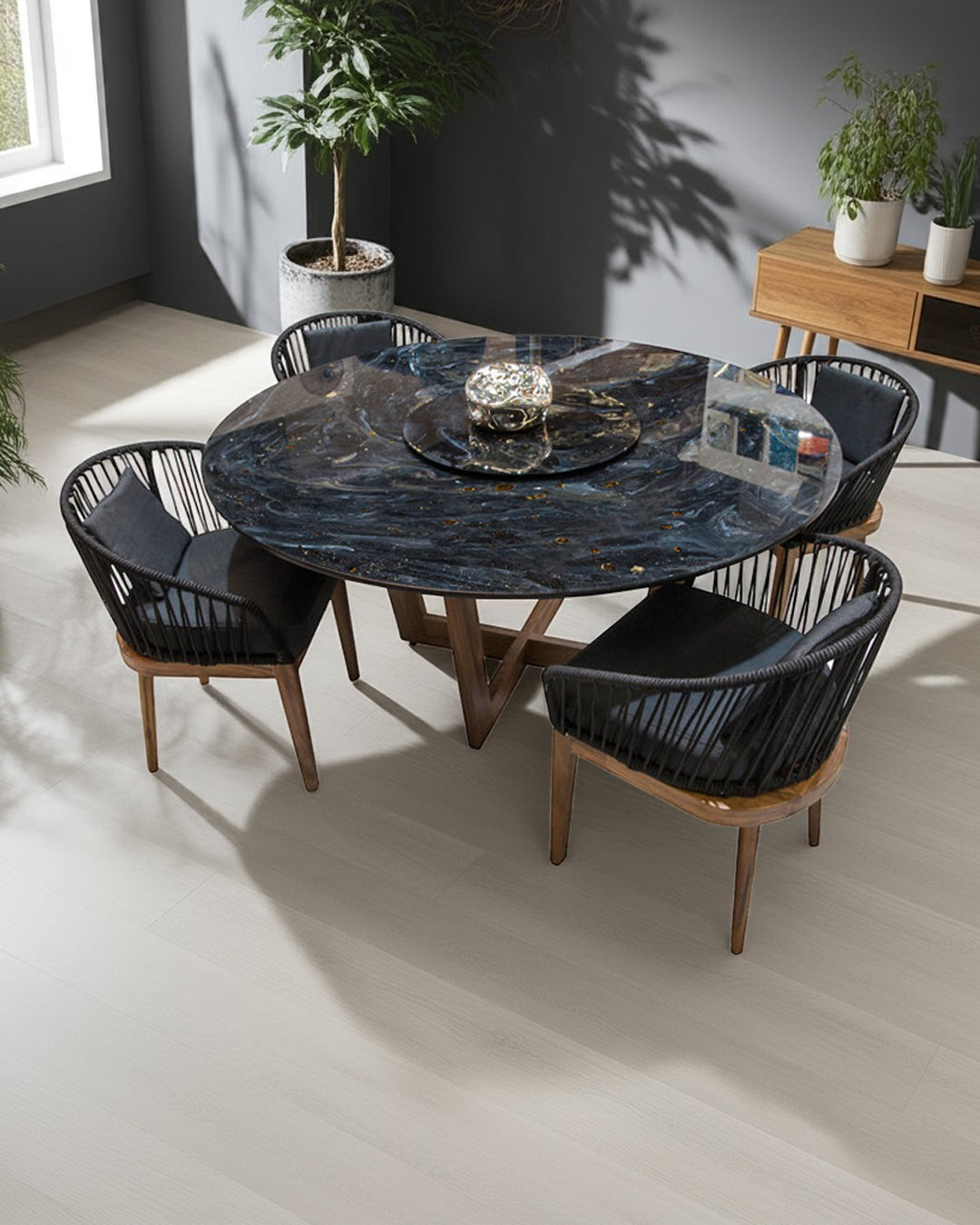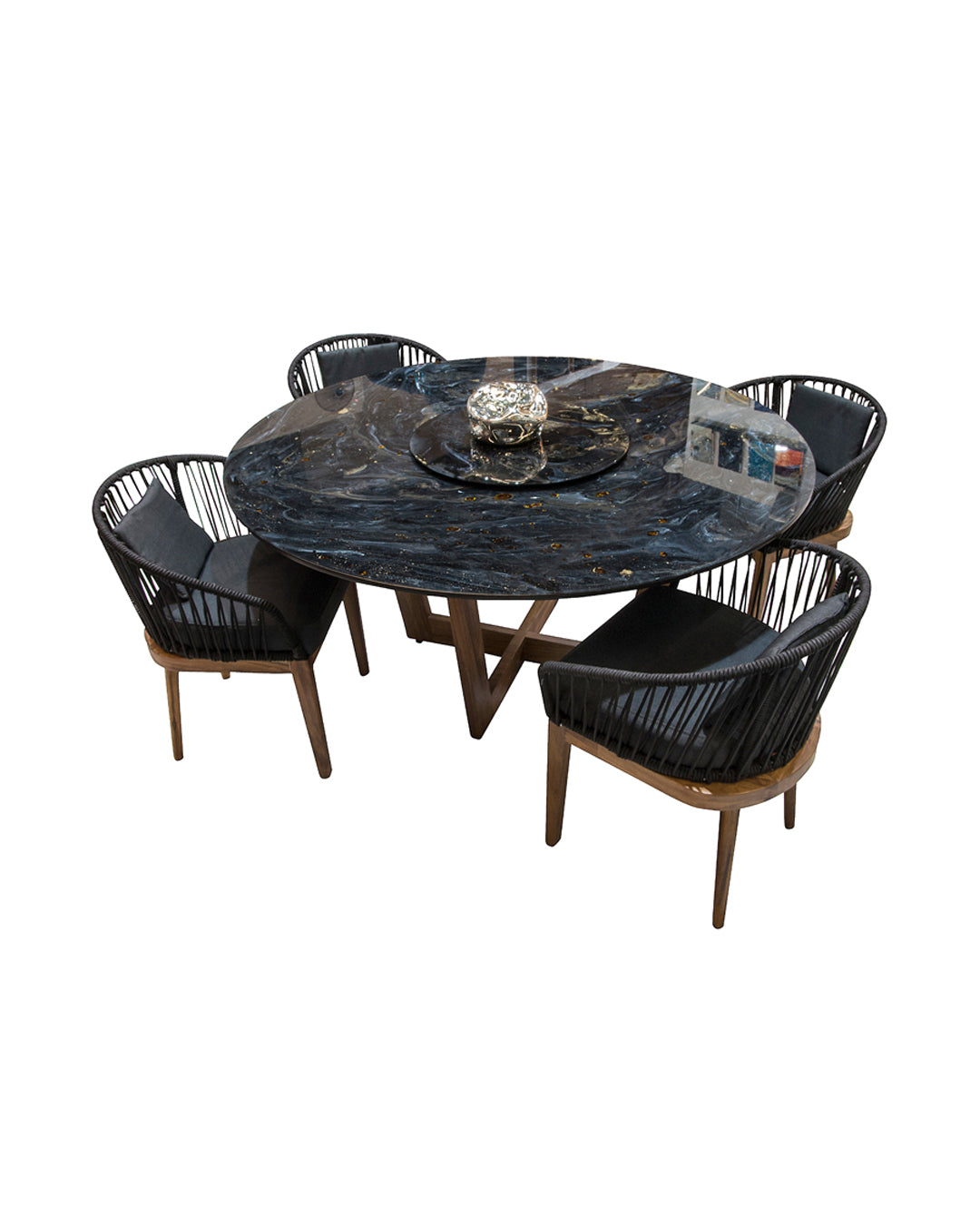 COMEDOR VICTORIA ARK NOCHE DORADA 160 CM CON 4 SILLAS DELHI
