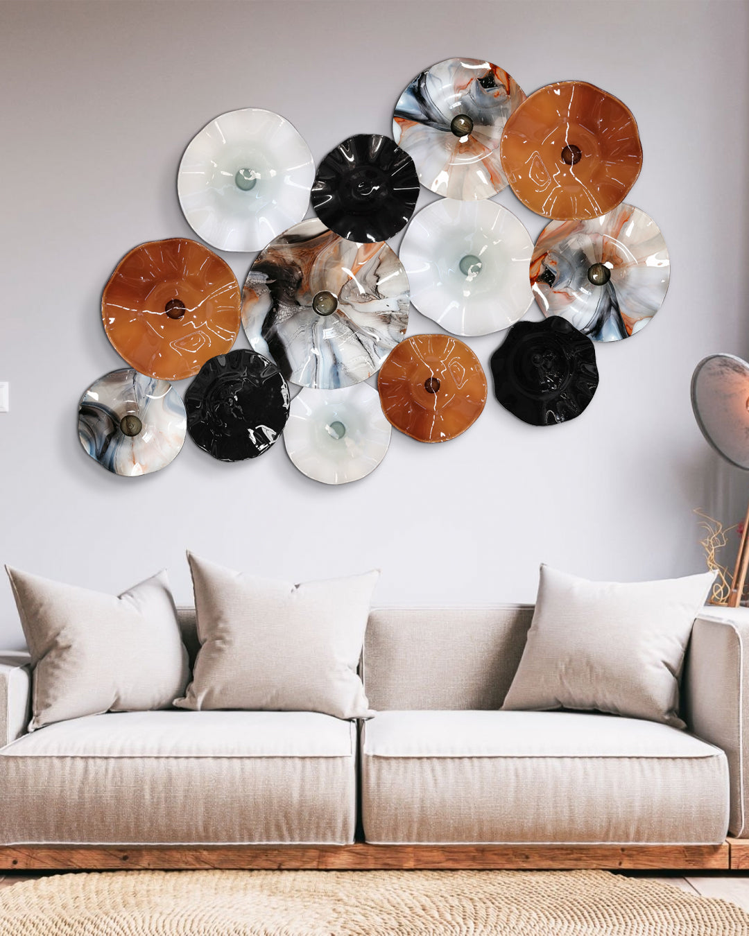 Con nuestro set de 13 platones de vidrio soplado podrás darle personalidad a tus espacios interiores gracias a sus distintas texturas y acabados originales, con sus diferentes combinaciones de color será posible crear ambientes especiales y visualmente atractivos que destacarán la belleza de su entorno en cualquier habitación, con la variación correcta destacarán la identidad de tu hogar.