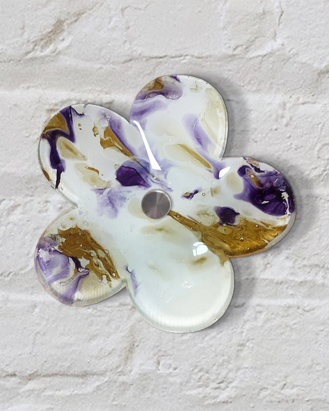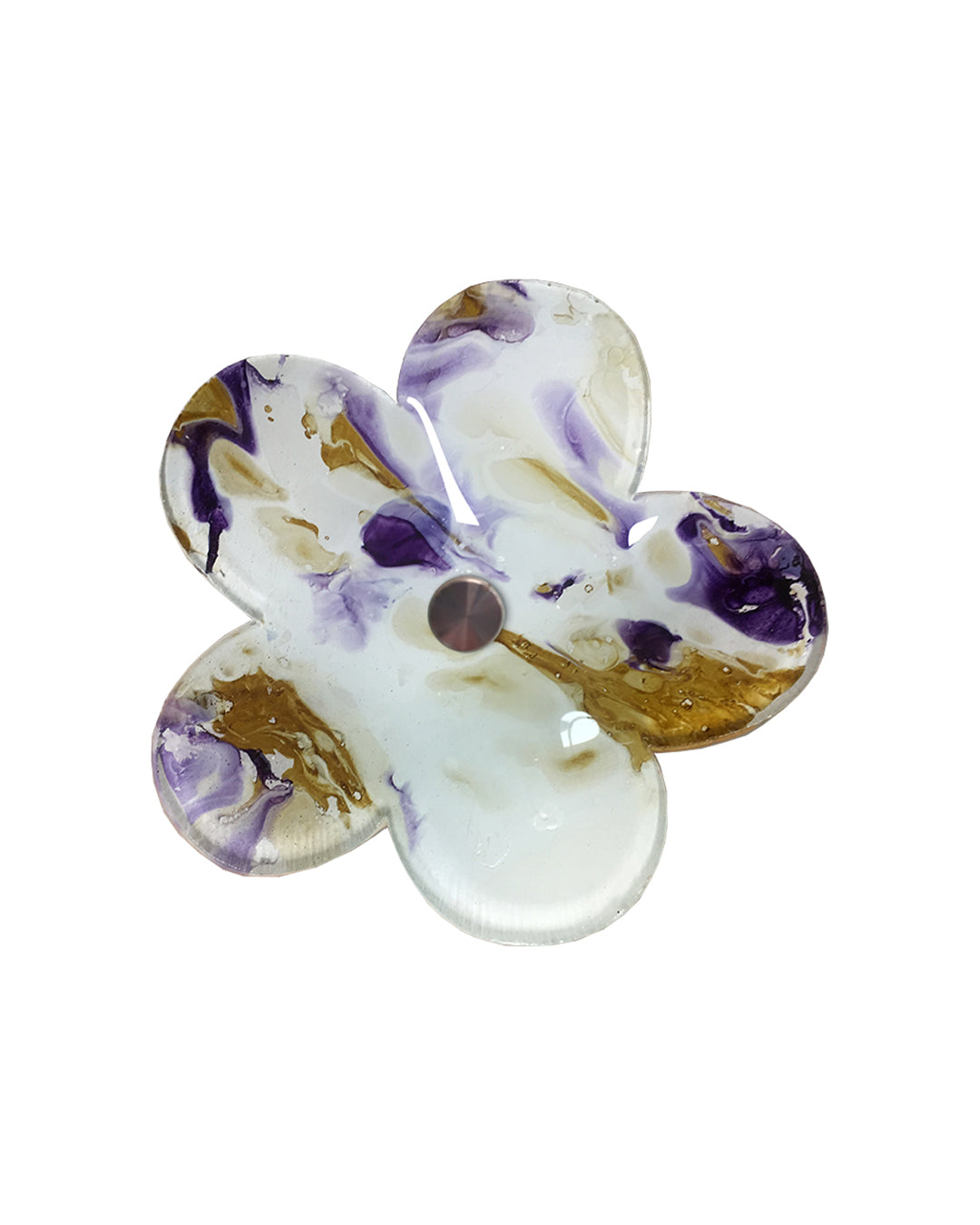 Flor de vidrio termoformado de 6 mm pintado a mano a base de una técnica de resinas.