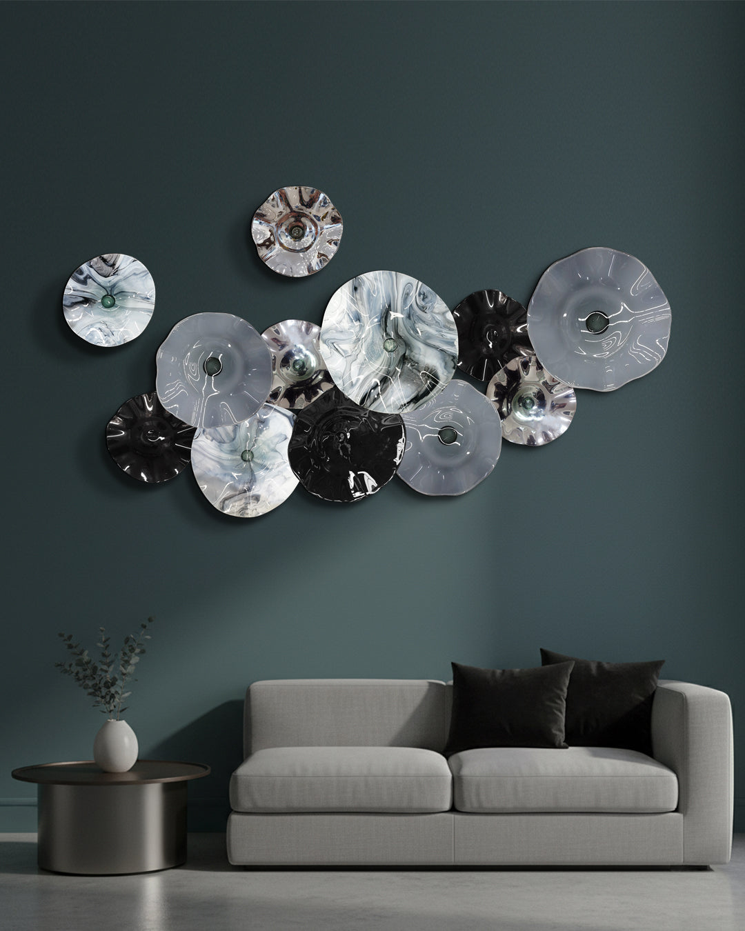 Con nuestro set de 12 platones de vidrio soplado podrás darle personalidad a tus espacios interiores gracias a sus distintas texturas y acabados originales, con sus diferentes combinaciones de color será posible crear ambientes especiales y visualmente atractivos que destacarán la belleza de su entorno en cualquier habitación, con la variación correcta destacarán la identidad de tu hogar.