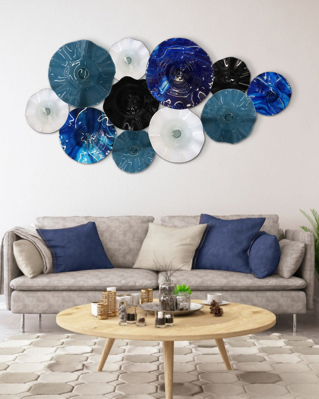 Con nuestro set de 11 platones de vidrio soplado podrás darle personalidad a tus espacios interiores gracias a sus distintas texturas y acabados originales, con sus diferentes combinaciones de color será posible crear ambientes especiales y visualmente atractivos que destacarán la belleza de su entorno en cualquier habitación, con la variación correcta destacarán la identidad de tu hogar.