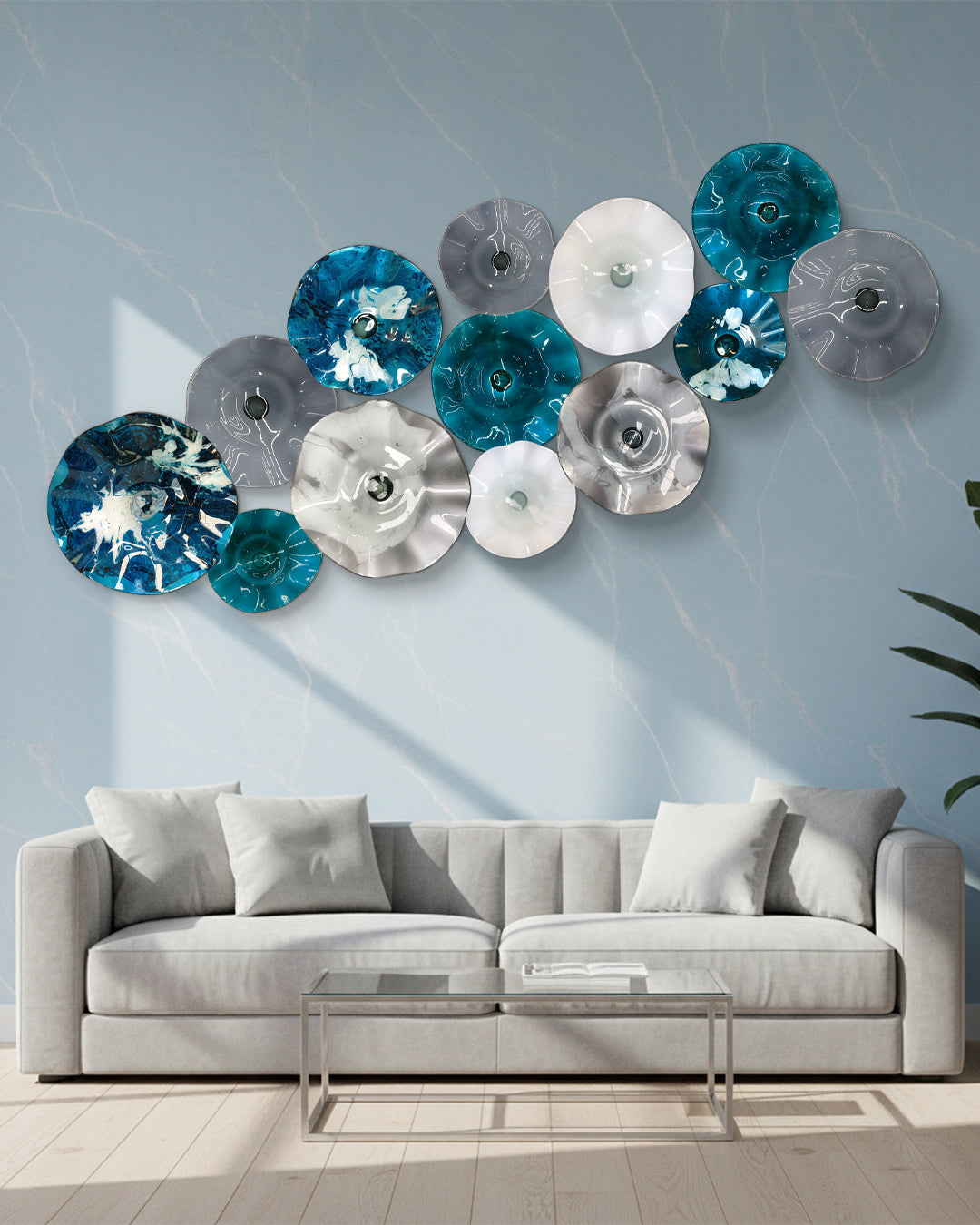 Con nuestro set de 13 platones de vidrio soplado podrás darle personalidad a tus espacios interiores gracias a sus distintas texturas y acabados originales, con sus diferentes combinaciones de color será posible crear ambientes especiales y visualmente atractivos que destacarán la belleza de su entorno en cualquier habitación, con la variación correcta destacarán la identidad de tu hogar.