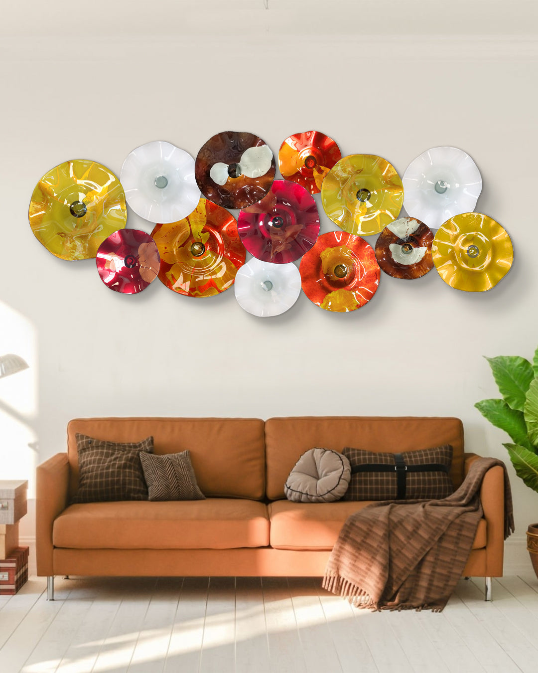 Con nuestro set de 13 platones de vidrio soplado podrás darle personalidad a tus espacios interiores gracias a sus distintas texturas y acabados originales, con sus diferentes combinaciones de color será posible crear ambientes especiales y visualmente atractivos que destacarán la belleza de su entorno en cualquier habitación, con la variación correcta destacarán la identidad de tu hogar.
