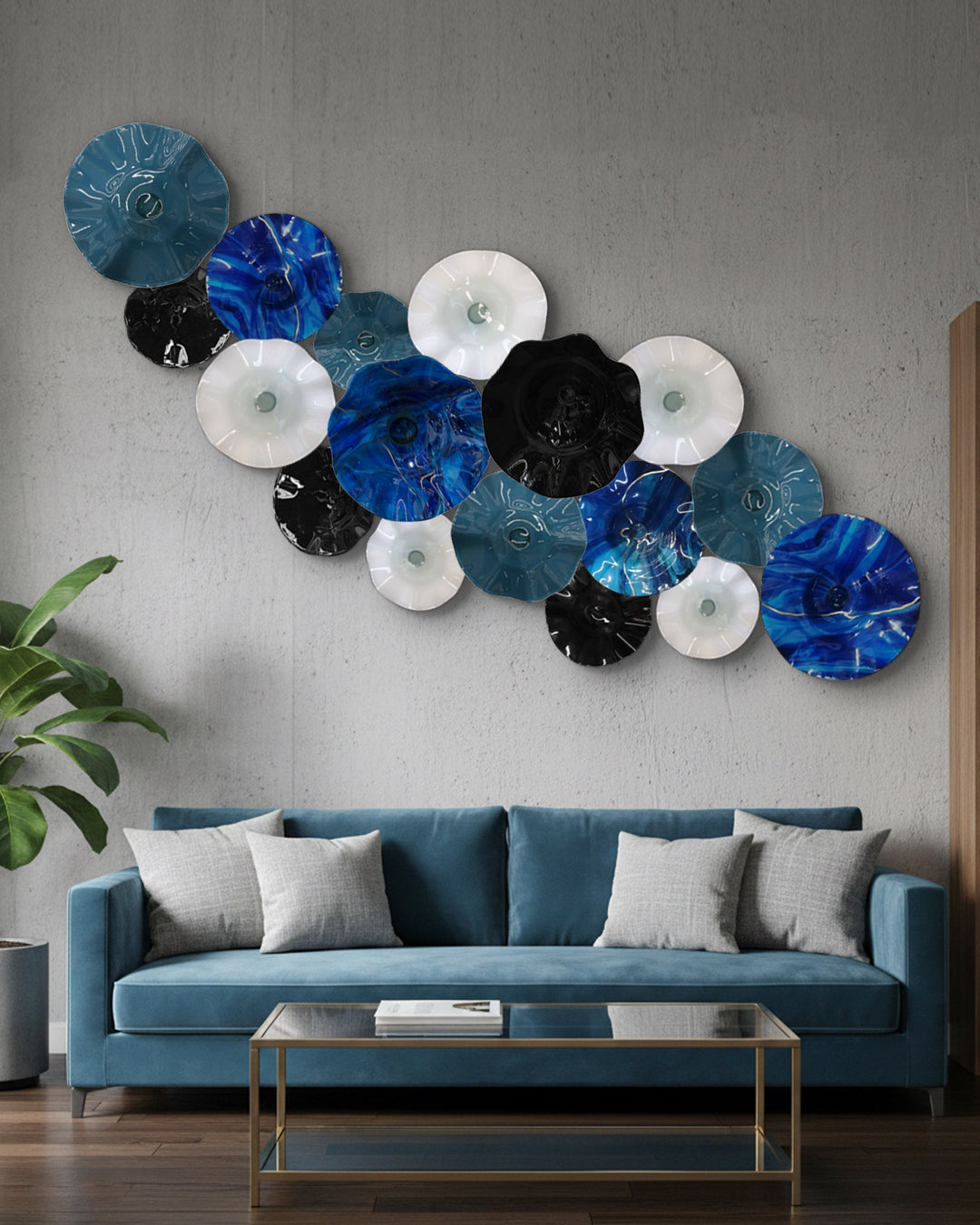 Con nuestro set de 17 platones de vidrio soplado podrás darle personalidad a tus espacios interiores gracias a sus distintas texturas y acabados originales, con sus diferentes combinaciones de color será posible crear ambientes especiales y visualmente atractivos que destacarán la belleza de su entorno en cualquier habitación, con la variación correcta destacarán la identidad de tu hogar.