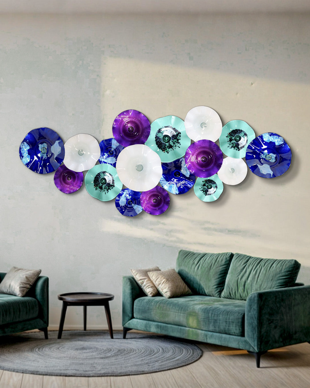 Con nuestro set de 17 platones de vidrio soplado podrás darle personalidad a tus espacios interiores gracias a sus distintas texturas y acabados originales, con sus diferentes combinaciones de color será posible crear ambientes especiales y visualmente atractivos que destacarán la belleza de su entorno en cualquier habitación, con la variación correcta destacarán la identidad de tu hogar.