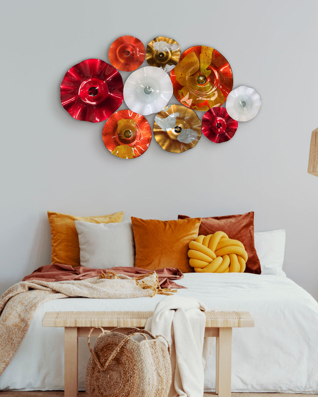 Con nuestro set de 9 platones de vidrio soplado podrás darle personalidad a tus espacios interiores gracias a sus distintas texturas y acabados originales, con sus diferentes combinaciones de color será posible crear ambientes especiales y visualmente atractivos que destacarán la belleza de su entorno en cualquier habitación, con la variación correcta destacarán la identidad de tu hogar.