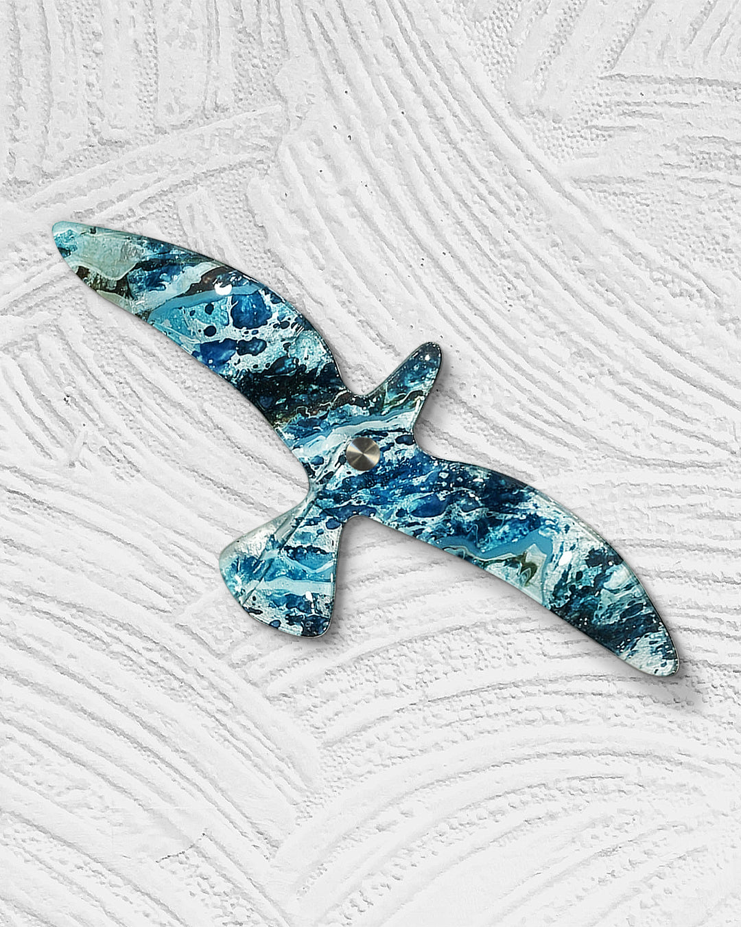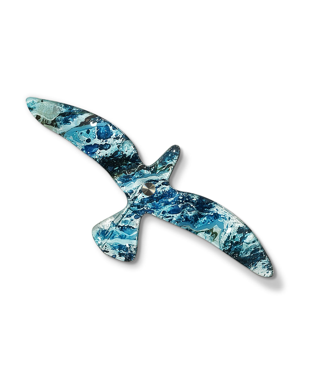 Paloma de vidrio termoformado de 6 mm pintado a mano a base de una técnica de resinas.