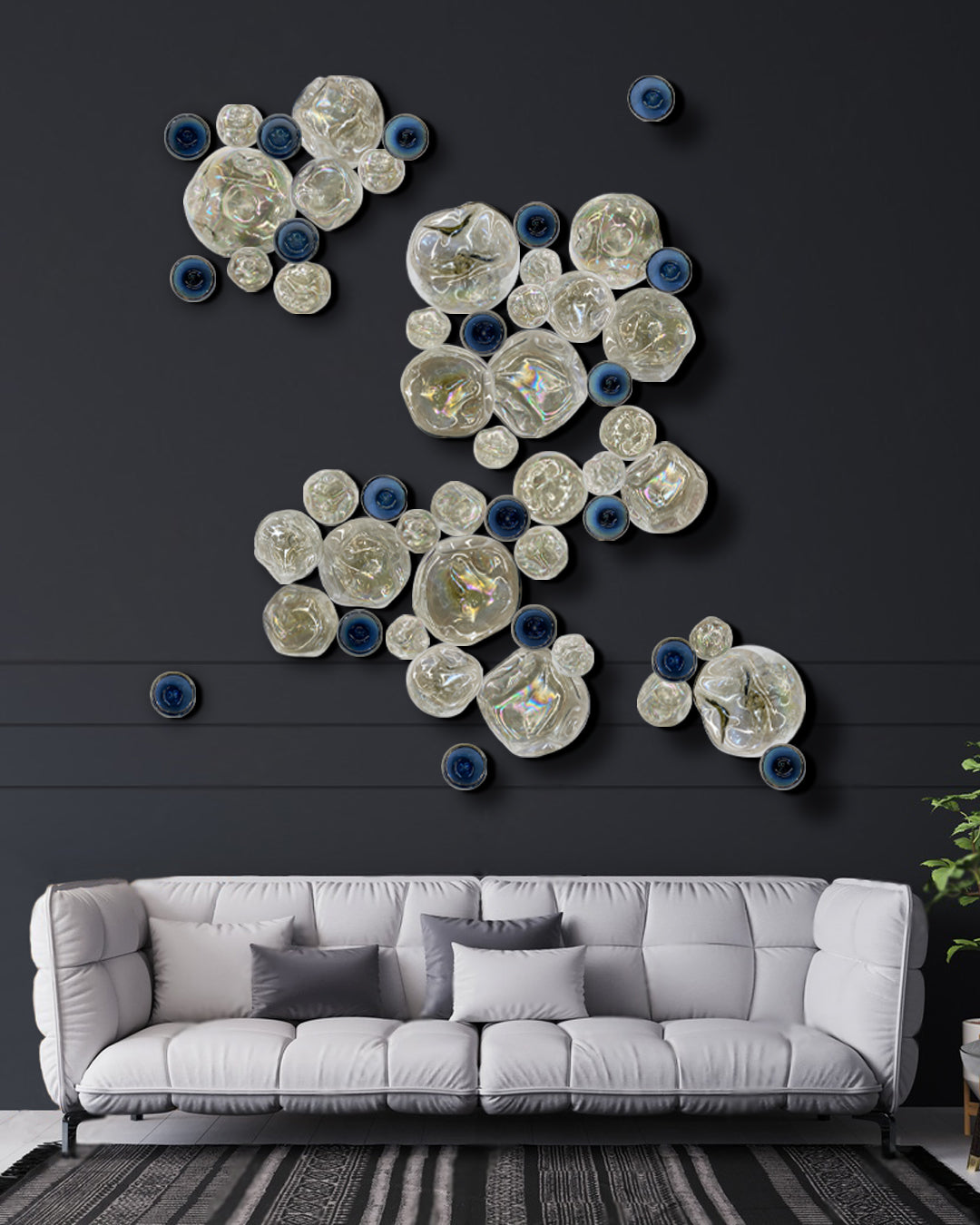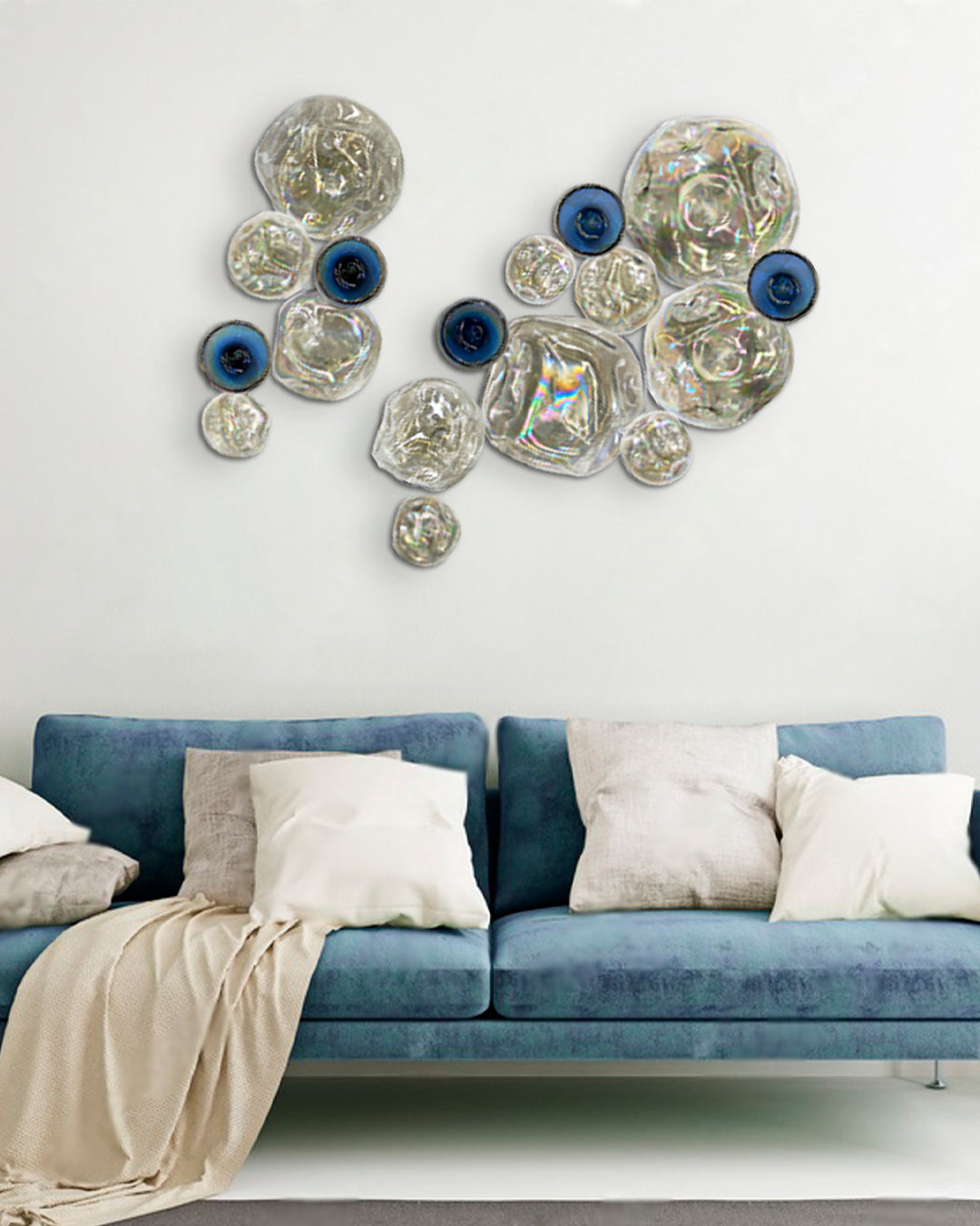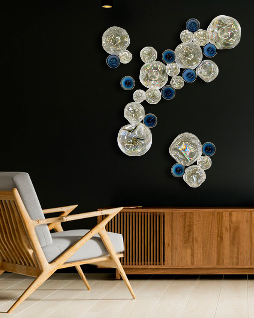 Piezas de vidrio soplado pintado a mano con bases individuales de metal.