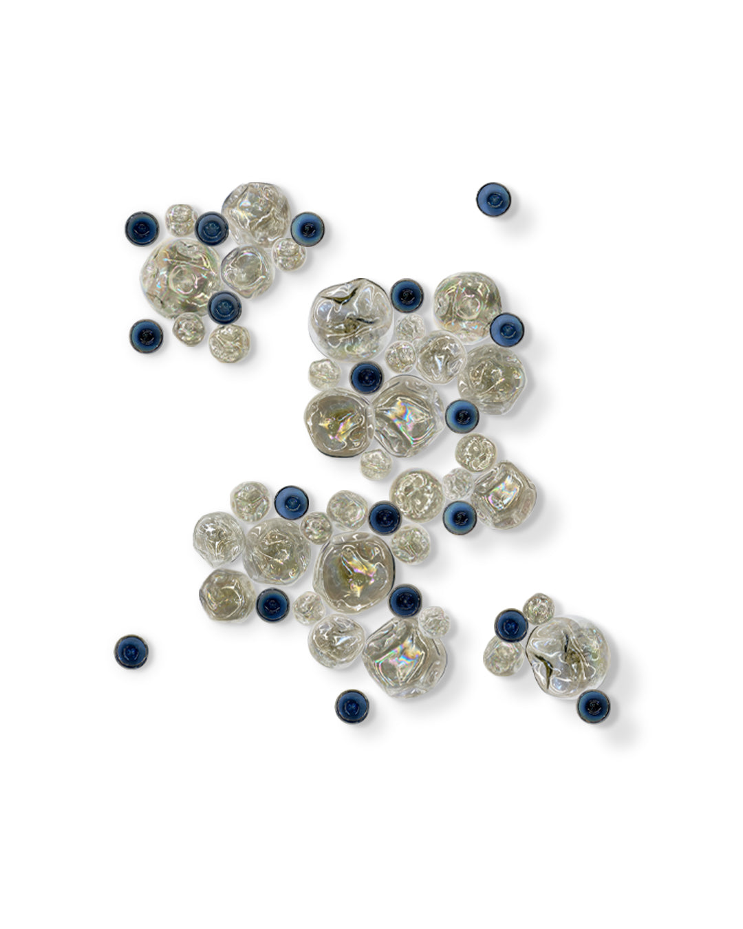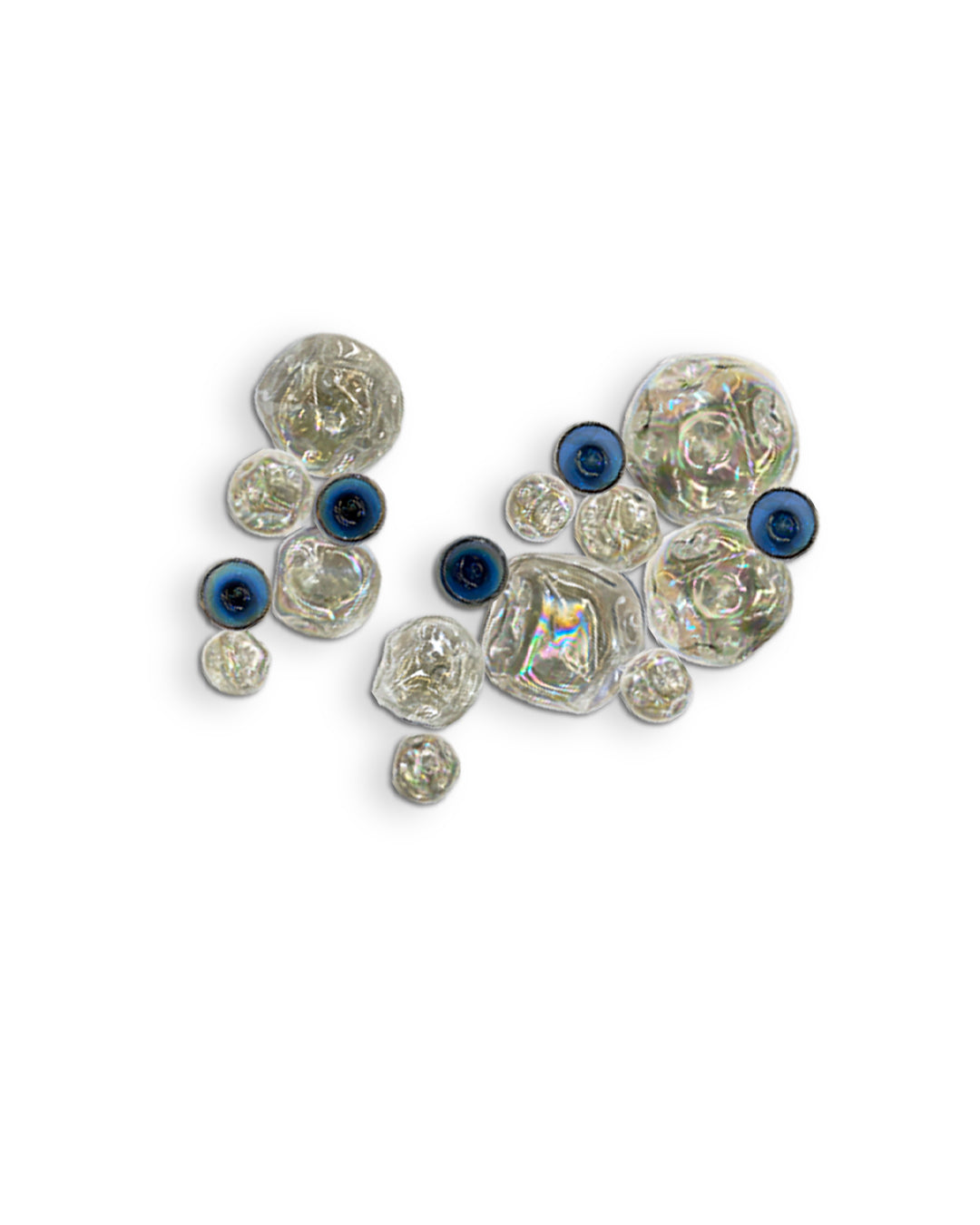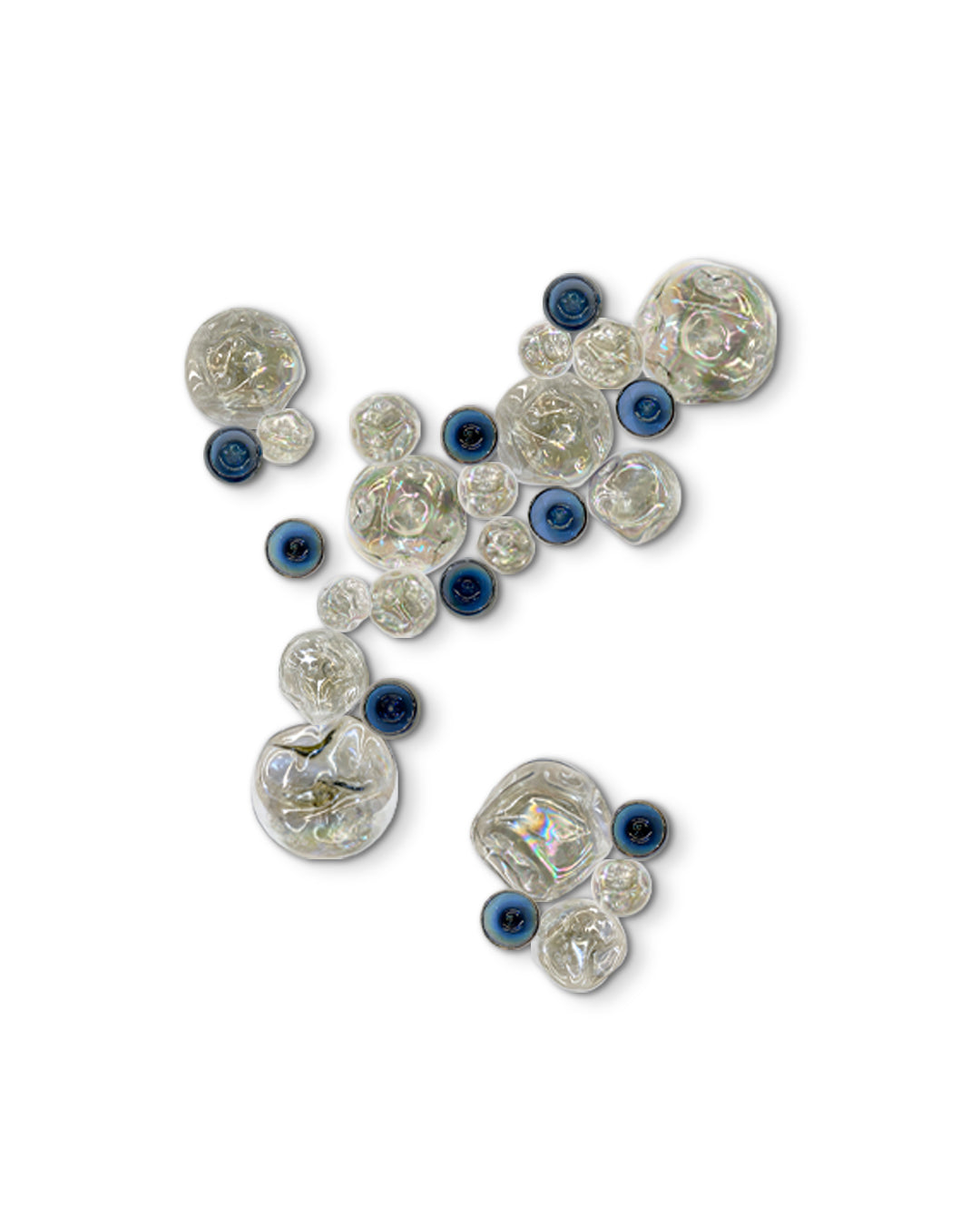 Piezas de vidrio soplado pintado a mano con bases individuales de metal.