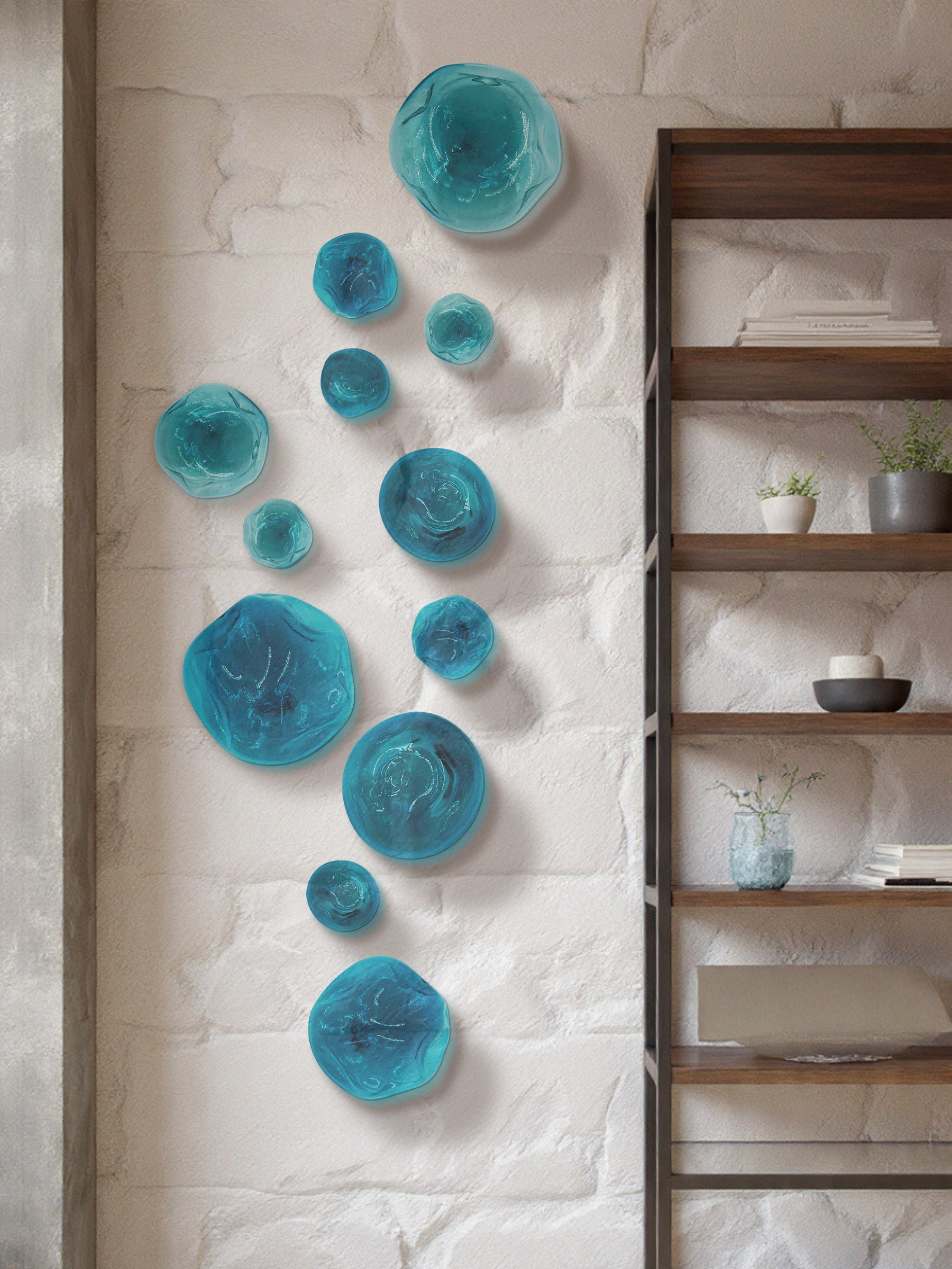 Esferas deformes de vidrio soplado pintado a mano con bases individuales de metal.