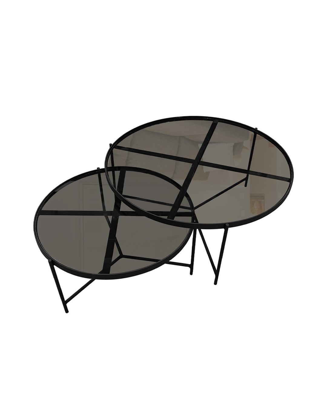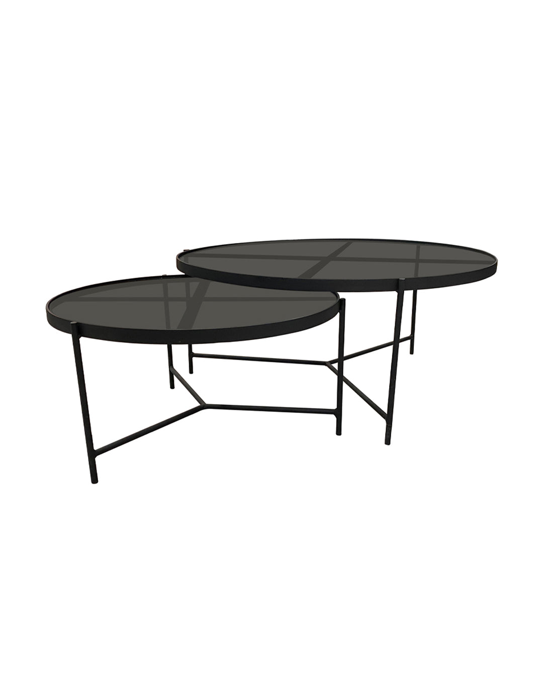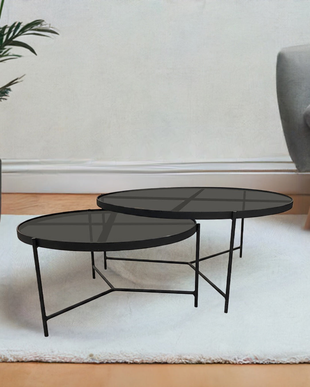 SET MESAS DE CENTRO DE METAL "BÉLGICA" 2 PZAS NEGRO HUMO