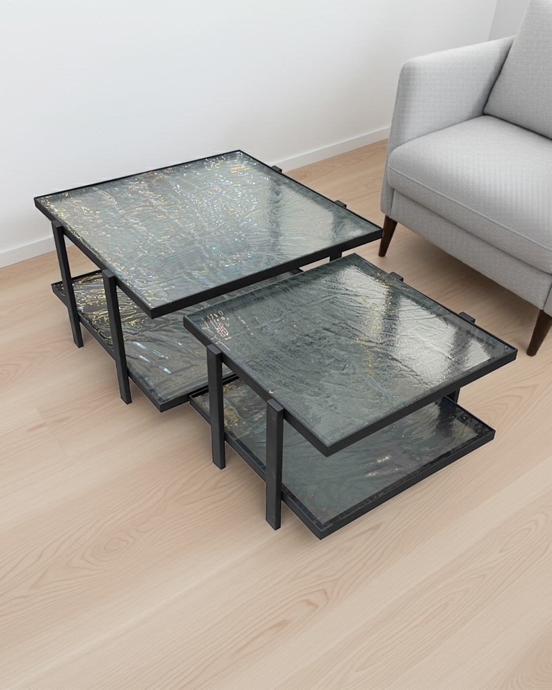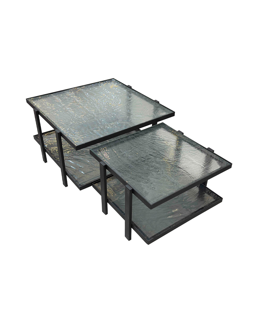 SET MESAS DE CENTRO DE METAL "CUADRANTE" 2 PZAS TERMOFORMADAS TRASLÚCIDAS